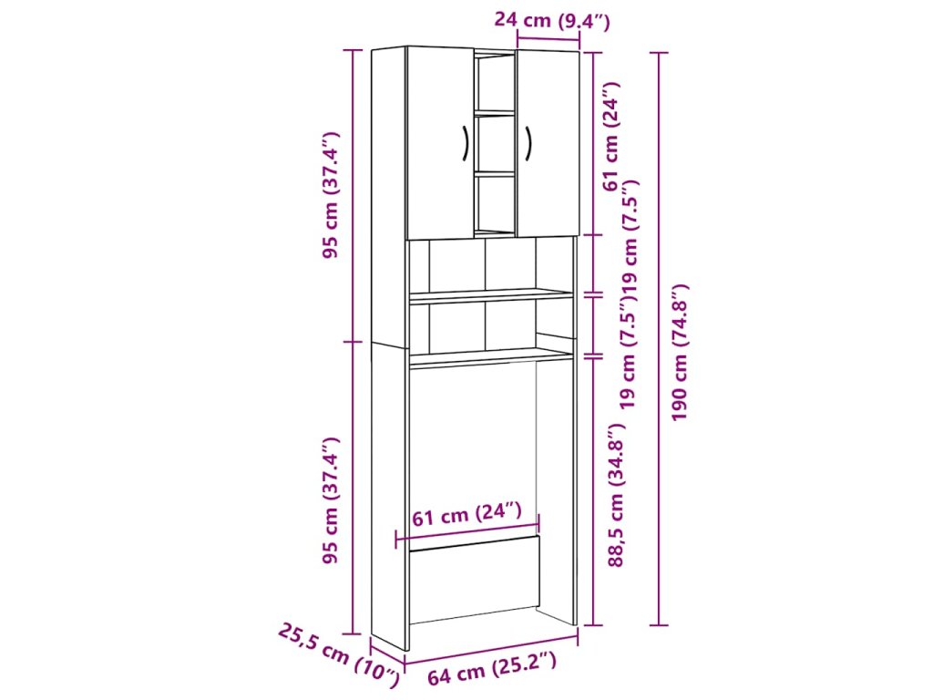 - Rozmery: 64 x 25,5 x 190 cm (Š x H x V)