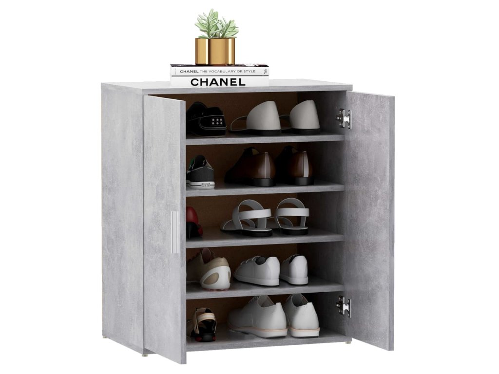 Táto skrinka do chodby je vyrobená z kompozitného dreva, ktoré je mimoriadne trvácne a robustné. Skrinka na topánky má 5 políc, ktoré poskytujú dostatok priestoru na prehľadné odkladanie topánok. Regál na topánky má 2 dvierka, ktoré ochránia vaše topánky pred prachom a zároveň sa postarajú o to, aby ste topánky nemali stále na očiach. Skrinku navyše môžete podľa potreby upevniť k zemi alebo k stene.