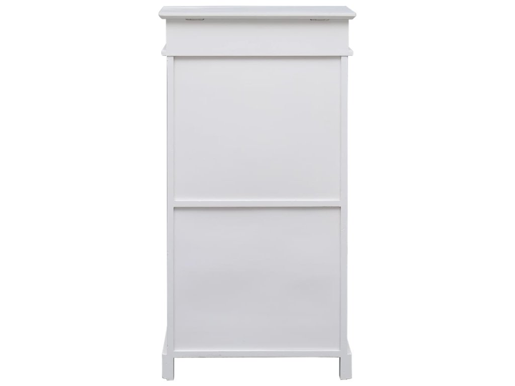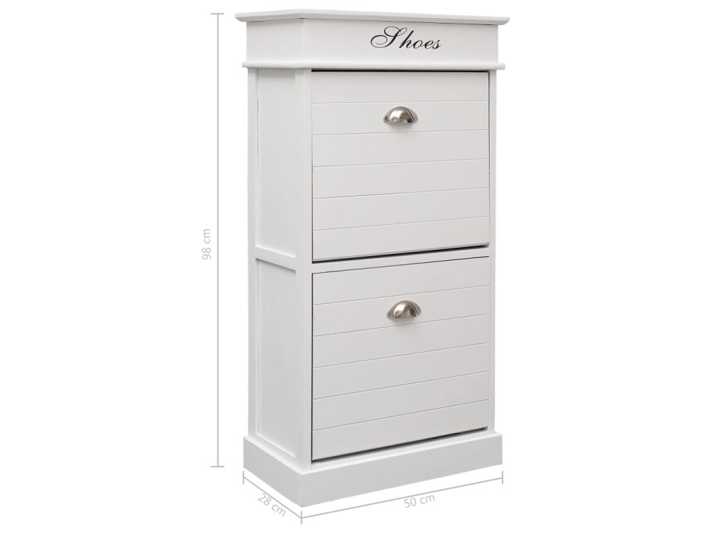 Skrinka do chodby je vyrobená z dreva paulovnie, a preto je mimoriadne pevná a trvácna. Dva veľké vyklápacie priečinky s priečnymi tyčami sa postarajú o to, aby ste mali vo svojich topánkach poriadok. Horná časť skrinky sa dá otvoriť a môžete si do nej uložiť rôzne doplnky, ako napríklad šnúrky či vložky do topánok a ďalšie drobnosti. Skrinka na topánky sa jednoducho montuje.