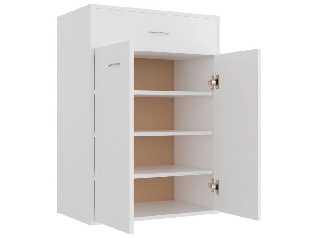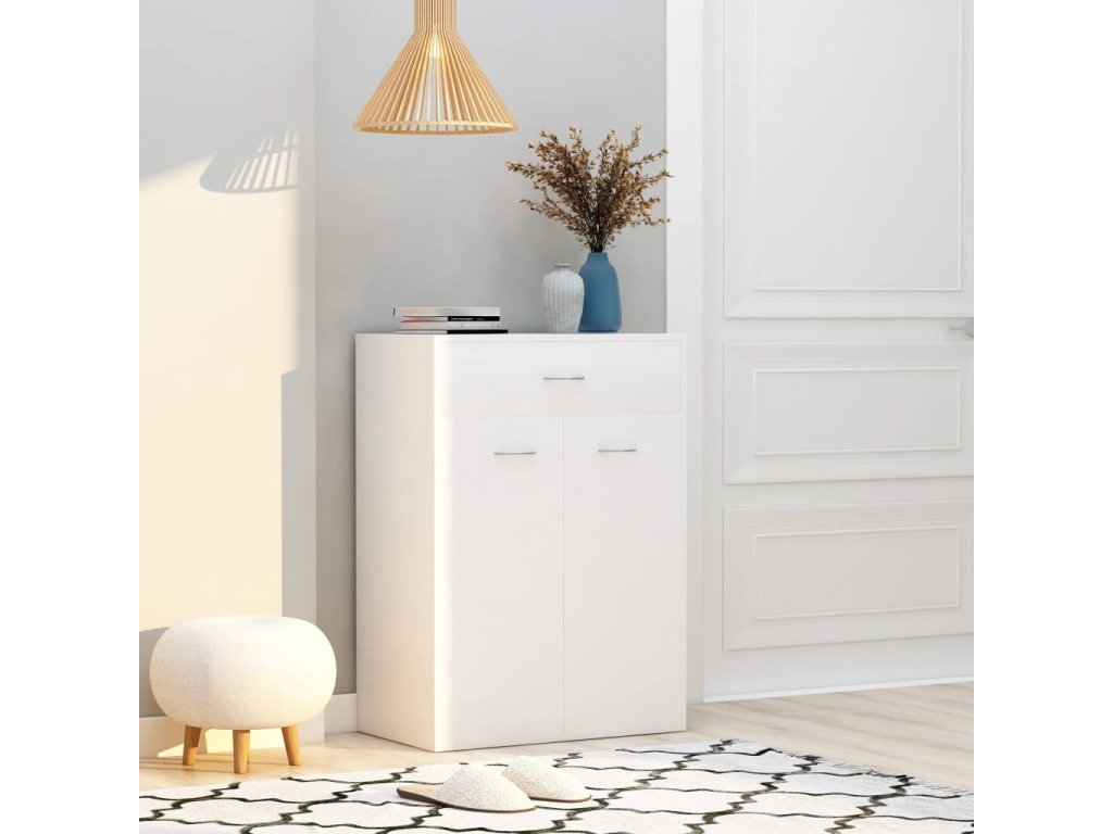 Regál je vyrobený z kvalitného kompozitného dreva, ktoré je trvácne a robustné, a tak zaručuje dlhú životnosť. Má jednoduchý dizajn, ktorý sa bude pekne hodiť do vášho interiéru. Do tejto skrinky so zásuvkou a 2 dvierkami, za ktorými nájdete 4 poličky, si môžete odložiť kľúče, topánky, úložné boxy, ale aj rôzne dekoratívne predmety, ako napríklad vázy.
