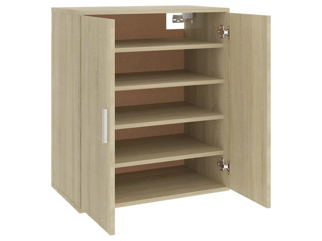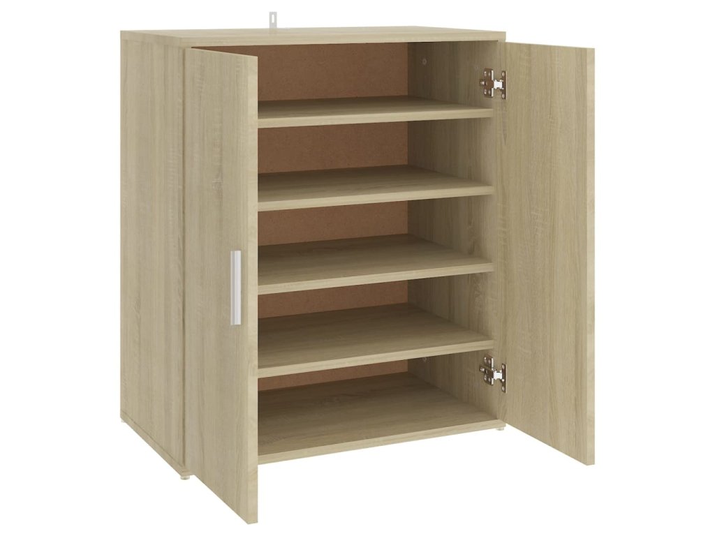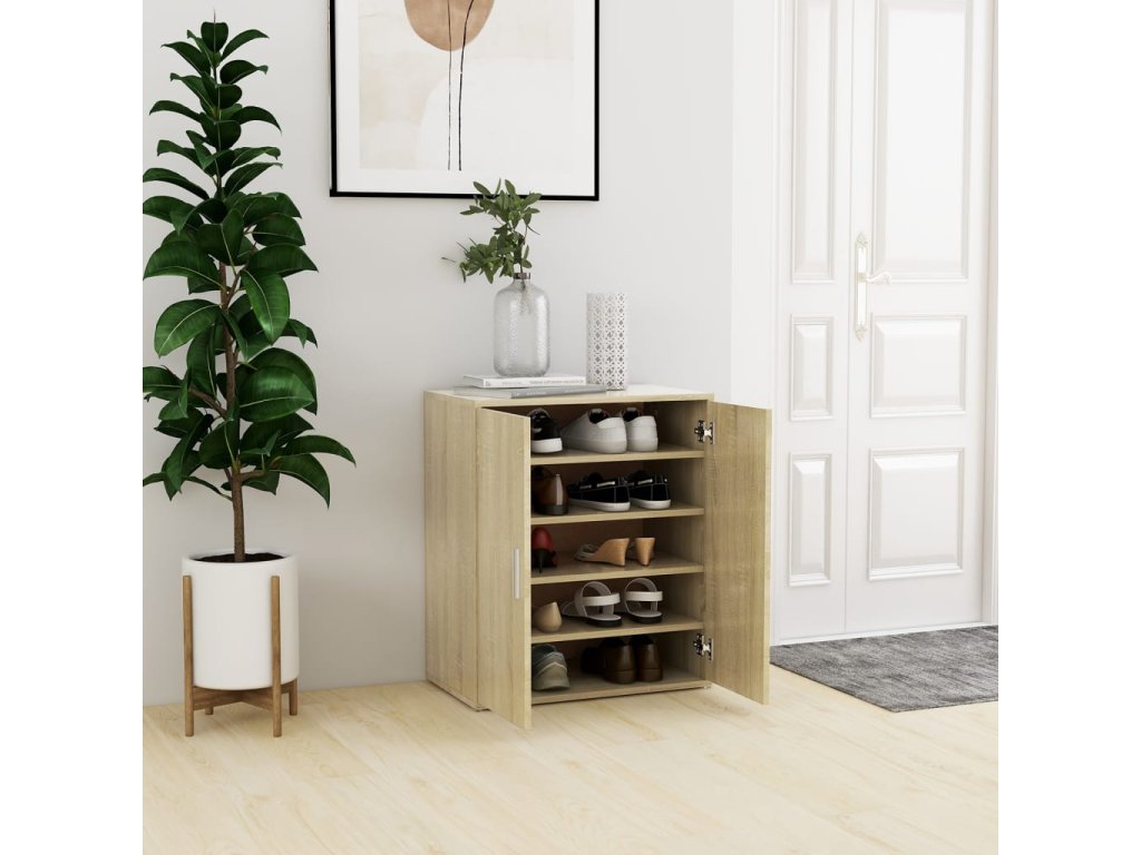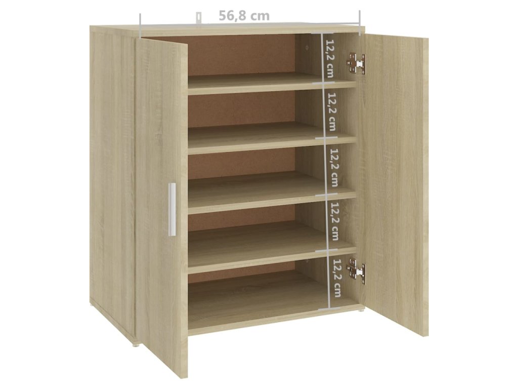 Táto skrinka do chodby je vyrobená z kompozitného dreva, ktoré je mimoriadne trvácne a robustné. Skrinka na topánky má 5 políc, ktoré poskytujú dostatok priestoru na prehľadné odkladanie topánok. Regál na topánky má 2 dvierka, ktoré ochránia vaše topánky pred prachom a zároveň sa postarajú o to, aby ste topánky nemali stále na očiach. Skrinku navyše môžete podľa potreby upevniť k zemi alebo k stene.