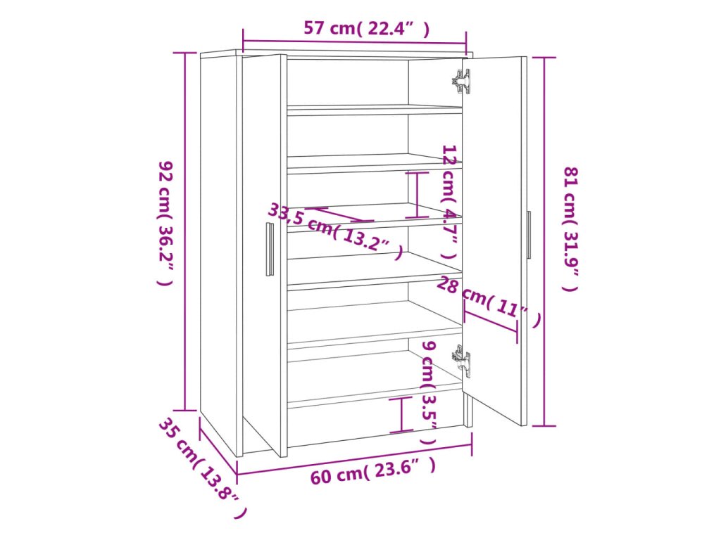 Skrinka je vyrobená z kompozitného dreva, ktoré jej dodáva rafinovaný vzhľad a potrebnú stabilitu a trvácnosť. Je vybavená dvierkami, za ktoré si môžete poukladať topánky, aby neboli stále na očiach. Skrinka je navyše dostatočné veľká, a tak sa do nej zmestí množstvo topánok.