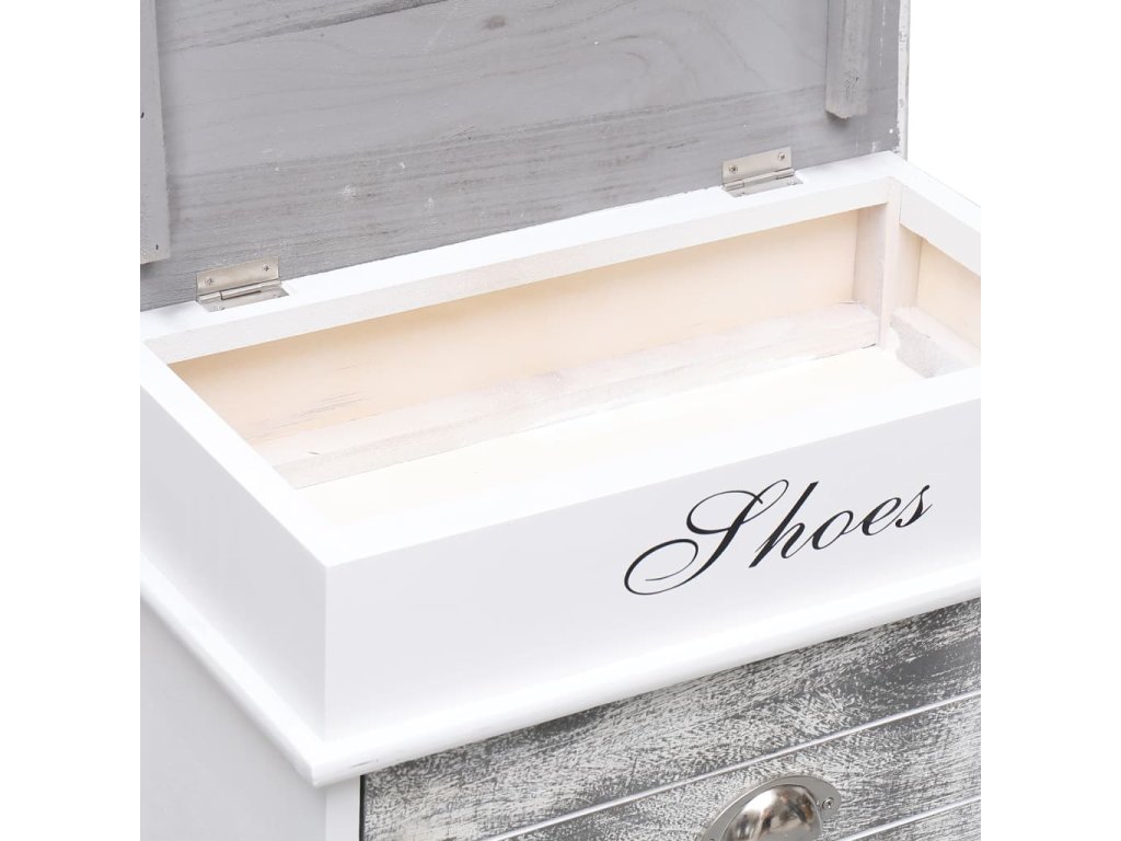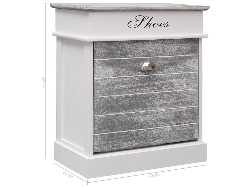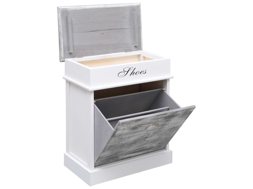 Skrinka do chodby je vyrobená z dreva paulovnie, a preto je mimoriadne pevná a trvácna. Veľký vyklápací priečinok s priečnymi tyčami sa postarajú o to, aby ste mali vo svojich topánkach poriadok. Horná časť skrinky sa dá otvoriť a môžete si do nej uložiť rôzne doplnky, ako napríklad šnúrky či vložky do topánok a ďalšie drobnosti. Skrinka na topánky sa jednoducho montuje.