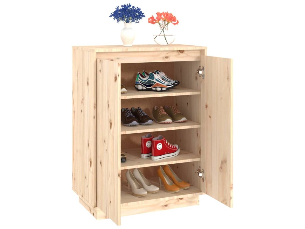 Úložná skrinka je vyrobená z masívneho borovicového dreva, vďaka čomu je stabilná a pevná. Stojan na topánky poskytne dostatok priestoru na to, aby ste mali topánky dobre organizované a na dosah. Stabilnú dosku botníku možno použiť na vystavenie dekoratívnych predmetov, ako sú fotorámčeky alebo rastliny v črepníkoch.