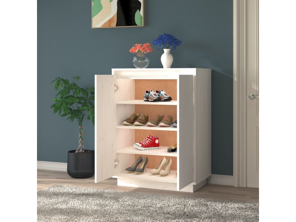 Úložná skrinka je vyrobená z masívneho borovicového dreva, vďaka čomu je stabilná a pevná. Stojan na topánky poskytne dostatok priestoru na to, aby ste mali topánky dobre organizované a na dosah. Stabilnú dosku botníku možno použiť na vystavenie dekoratívnych predmetov, ako sú fotorámčeky alebo rastliny v črepníkoch.