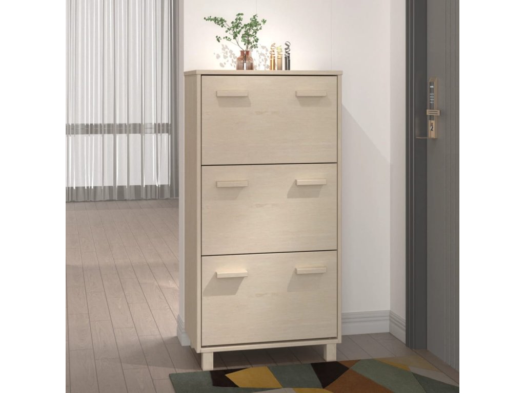Je vyrobený z masívneho borovicového dreva, vďaka čomu je stabilný a pevný. Má tri výklopné zásuvky, ktoré poskytujú dostatok priestoru na uloženie obuvi a udržiavajú topánky bez prachu. S týmto praktickým organizérom vás už nebudú otravovať topánky, ktoré vám zavadzajú na podlahe.