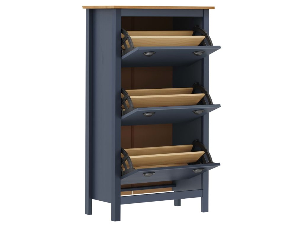 Tento organizér topánok, ktorý vyrobený z masívneho borovicového dreva, je stabilný a trvácny. Obsahuje 3 priehradky s 3 výklopnými dverami pre ľahký prístup.