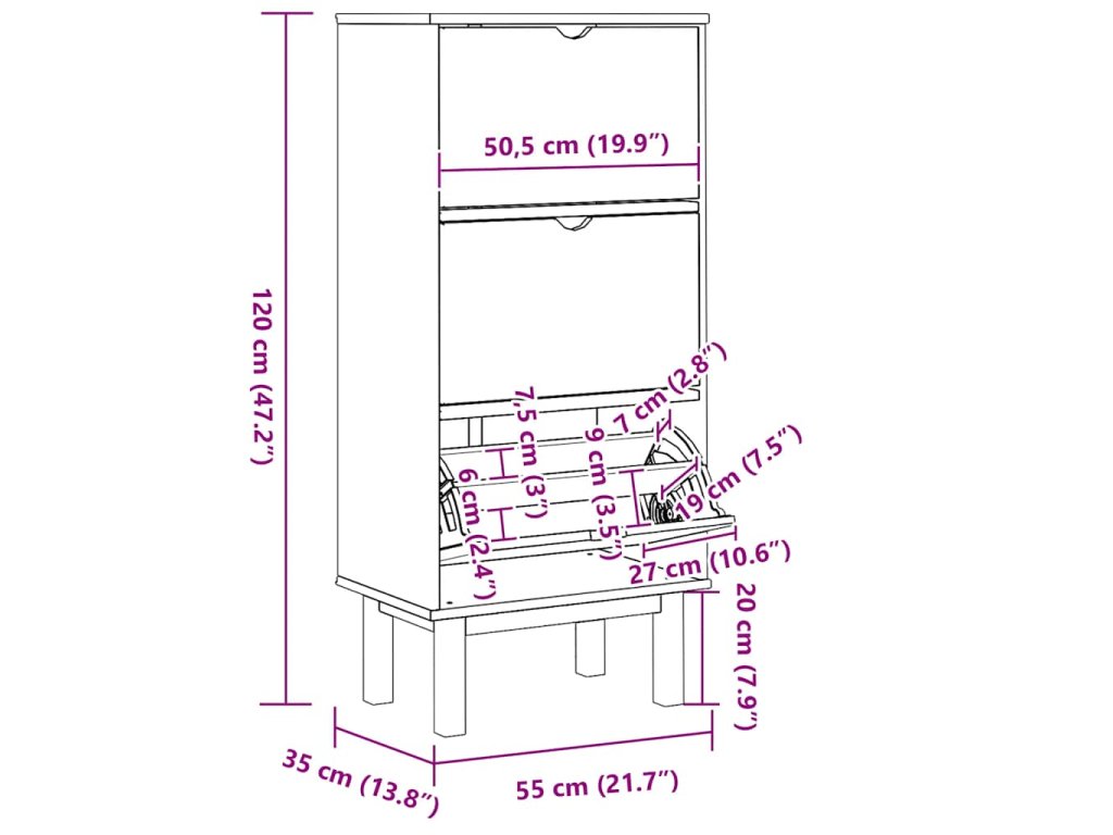 - Dostatok úložného priestoru: Úložný priestor na topánky má 3 vyklápacie zásuvky v 2 radách, ktoré poskytujú dostatok úložného priestoru na to, aby ste si topánky a ďalšie predmety dobre zorganizovali.