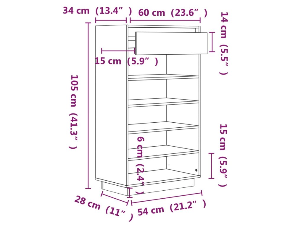 Úložná skrinka je vyrobená z masívneho borovicového dreva, vďaka čomu je stabilná a pevná. Stojan na topánky poskytne dostatok priestoru na to, aby ste mali topánky dobre organizované a na dosah. Stabilnú dosku botníku možno použiť na vystavenie dekoratívnych predmetov, ako sú fotorámčeky alebo rastliny v črepníkoch.