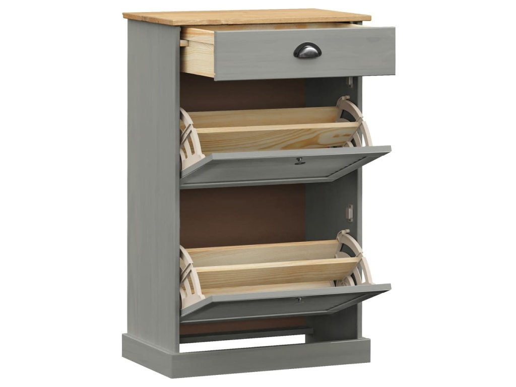 - Borovicový masív: Borovicový masív je krásny prírodný materiál. Borovicové drevo má rovnú kresbu a nachádzajú sa na ňom hrče, ktoré tomuto materiálu dodávajú charakteristický rustikálny vzhľad. Úložný priestor na topánky je vyrobený z masívneho borovicového dreva a je odolný a pevný.