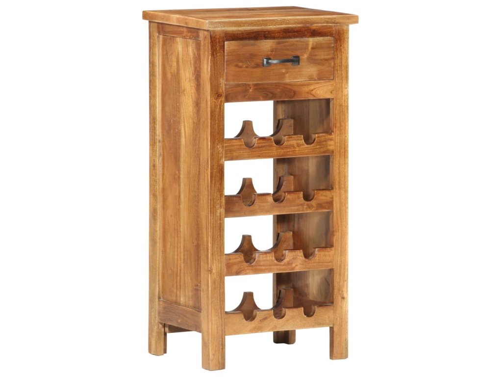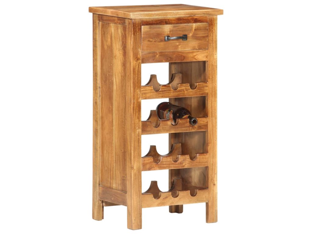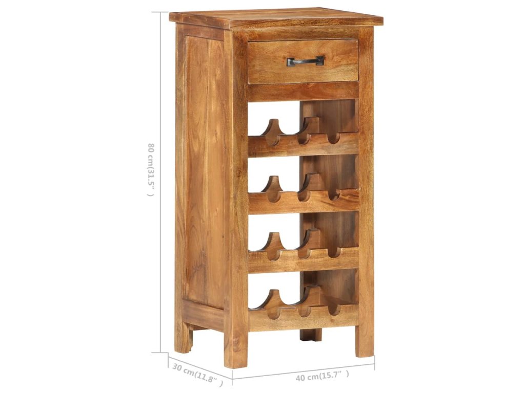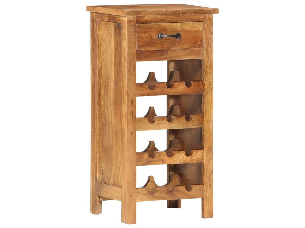 Skrinka na víno je vyrobená z akáciového masívu, ktorý bol ošetrený brúsením a lakovaním, vďaka čomu získal krásnu povrchovú úpravu a rafinovaný vzhľad. Skrinka je kompletne ručne vyrobená a vďaka krásnej textúre dreva je každý kus nábytku jedinečný a trochu odlišný od ostatných. Poskytuje dostatok priestoru na odkladanie a vystavenie vašich fliaš, pohárov, otváračov na fľaše a iných potrieb, ale aj kníh či rôznych dekoratívnych predmetov. Položka je už zostavená; žiadna montáž nie je potrebná.