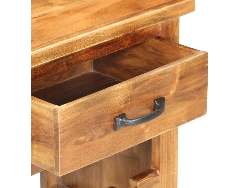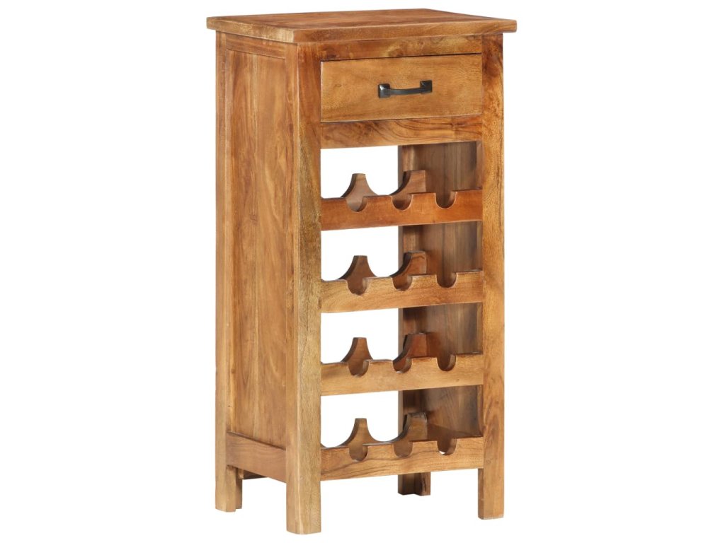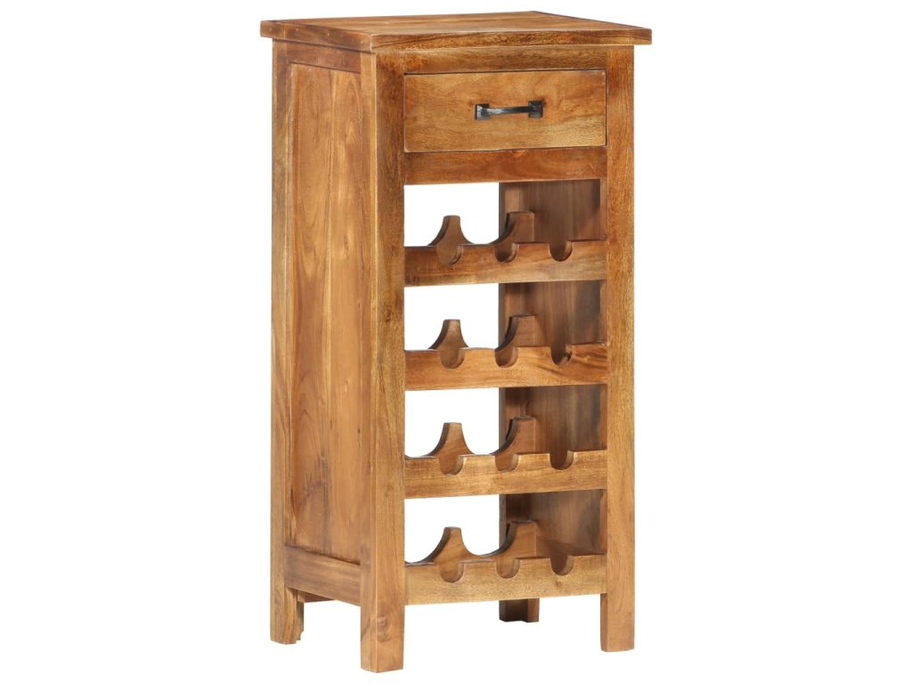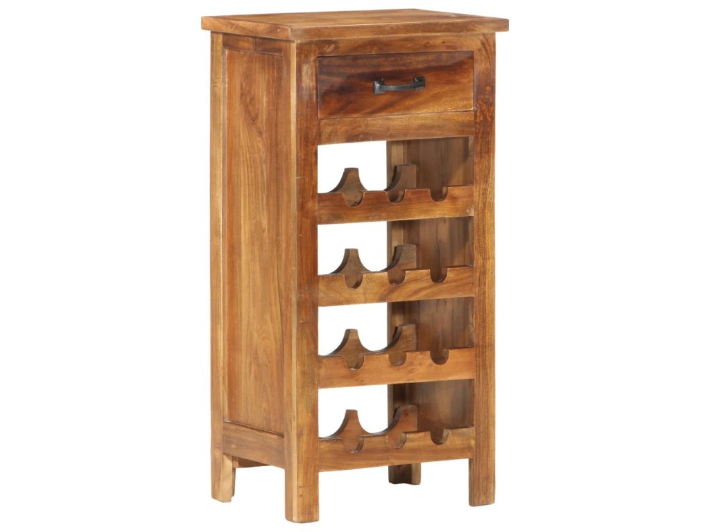 Skrinka na víno je vyrobená z akáciového masívu, ktorý bol ošetrený brúsením a lakovaním, vďaka čomu získal krásnu povrchovú úpravu a rafinovaný vzhľad. Skrinka je kompletne ručne vyrobená a vďaka krásnej textúre dreva je každý kus nábytku jedinečný a trochu odlišný od ostatných. Poskytuje dostatok priestoru na odkladanie a vystavenie vašich fliaš, pohárov, otváračov na fľaše a iných potrieb, ale aj kníh či rôznych dekoratívnych predmetov. Položka je už zostavená; žiadna montáž nie je potrebná.