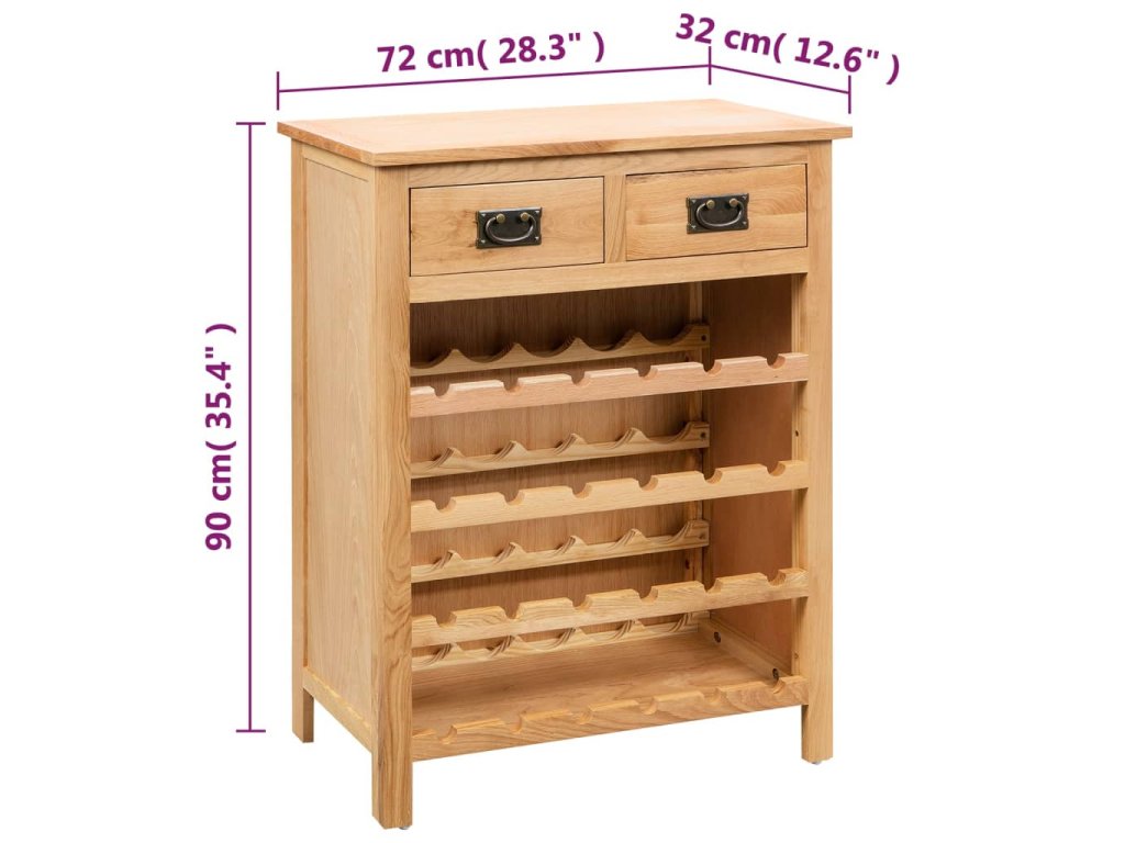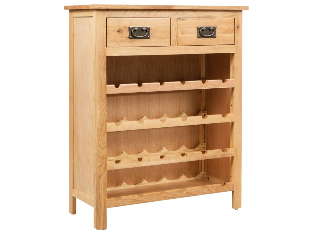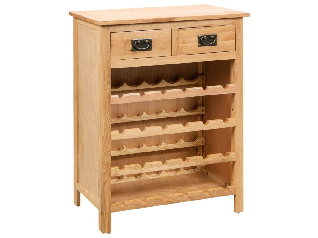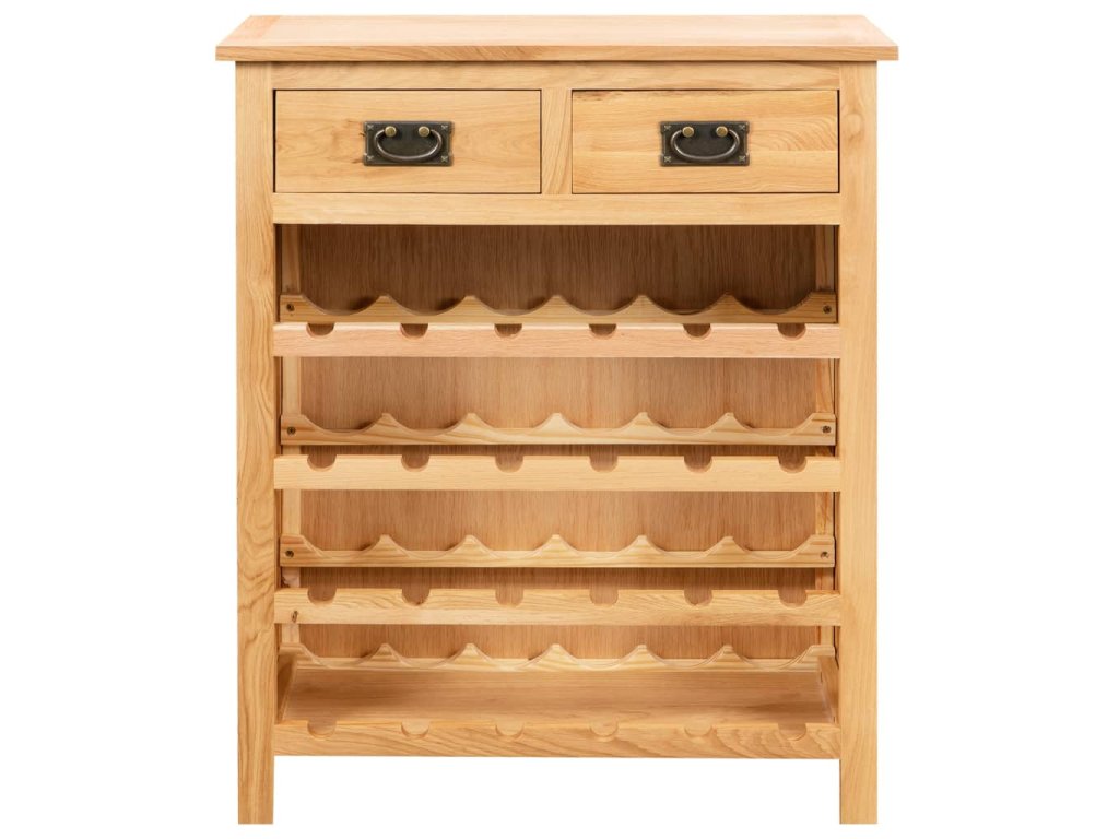 Skrinka na víno je vyrobená z dubového masívu a z MDF s dubovou dyhou, vďaka čomu je naozaj stabilná a trvácna. Vystupujúce rímsy jej dodávajú elegantný štýl. Skrinka ponúka množstvo priestoru na odkladanie fliaš s vínom. Vďaka krásnej povrchovej úprave a úhľadnými kovovými komponentmi skrášli tento výrobok každý interiér.
