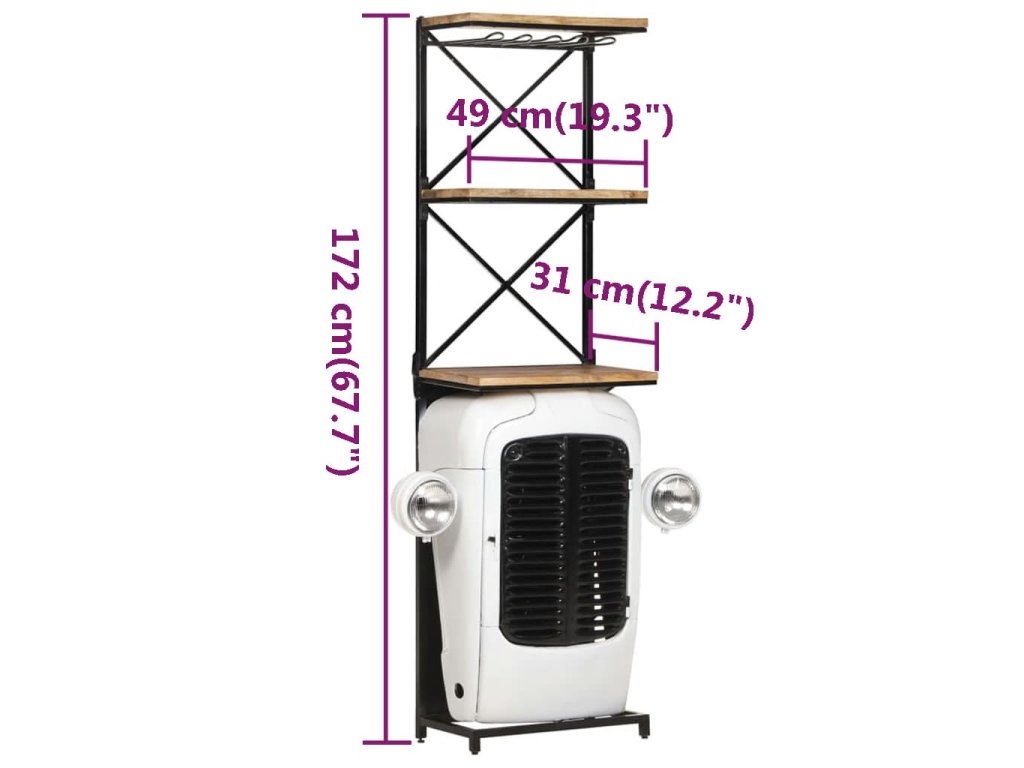 Stojan na víno je vyrobený zo surového mangového dreva, vďaka čomu je skutočne stabilný a trvácny. Mangový masív je drevo tropického listnatého stromu, ktoré je dostatočne pevné na to, aby unieslo aj značnú váhu, no zároveň odoláva každodennému opotrebovaniu. Skrinka s dizajnom traktora navyše obsahuje 2 poličky a 9 držiakov na fľaše, a tak poskytuje množstvo priestoru na odkladanie vínových fliaš či iných predmetov.