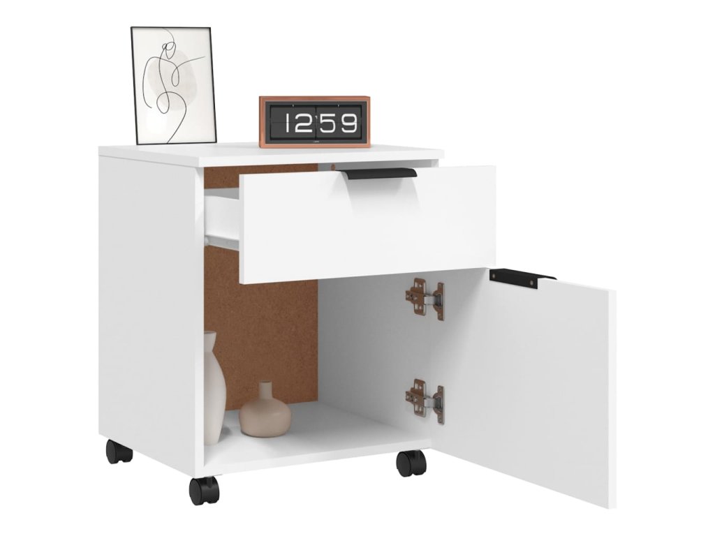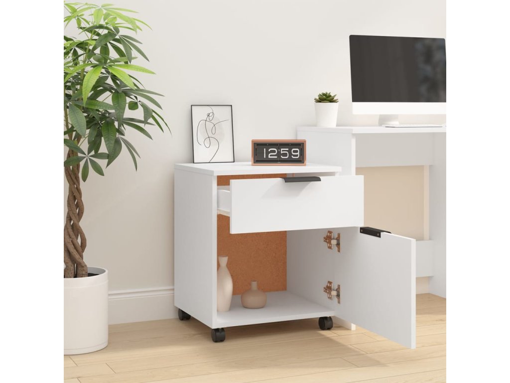 Táto klasická kancelárska skrinka je vybavená otočnými kolieskami pre jednoduchú mobilitu a ponúka dostatok priestoru na umiestnenie nápojov, časopisov a dekoratívnych predmetov.