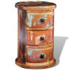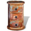 Táto okrúhla drevená skrinka s 3 zásuvkami má starožitný vzhľad a poskytuje množstvo úložného priestoru, aby ste mohli svoje veci udržiavať v čistote a poriadku. Vrch skrinky má hladký povrch, na ktorý môžete položiť vázy alebo rôzne dekoračné predmety. Zásuvky sa dajú ľahko otvárať a zatvárať pomocou železných úchytiek a krúžkov.
