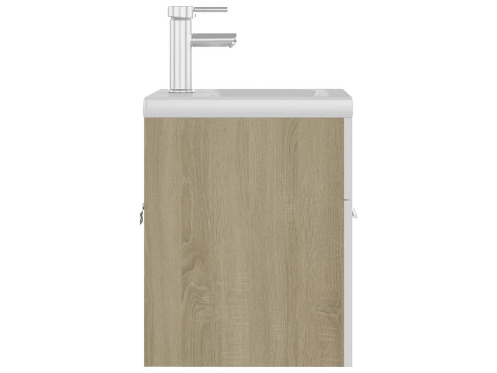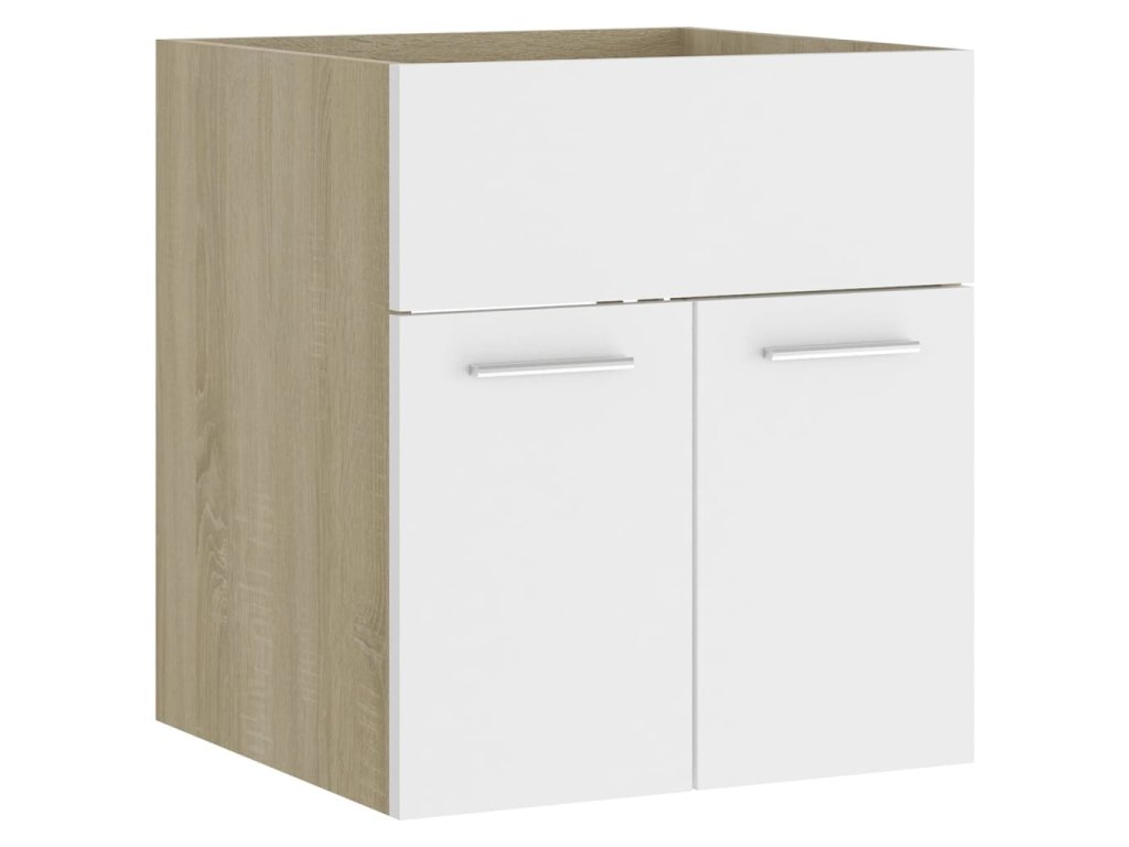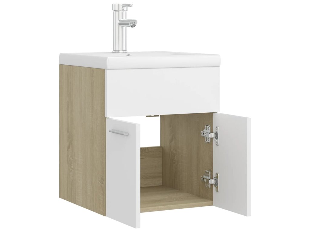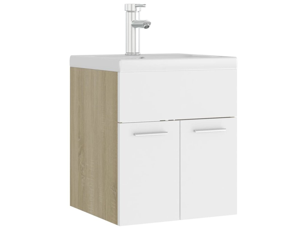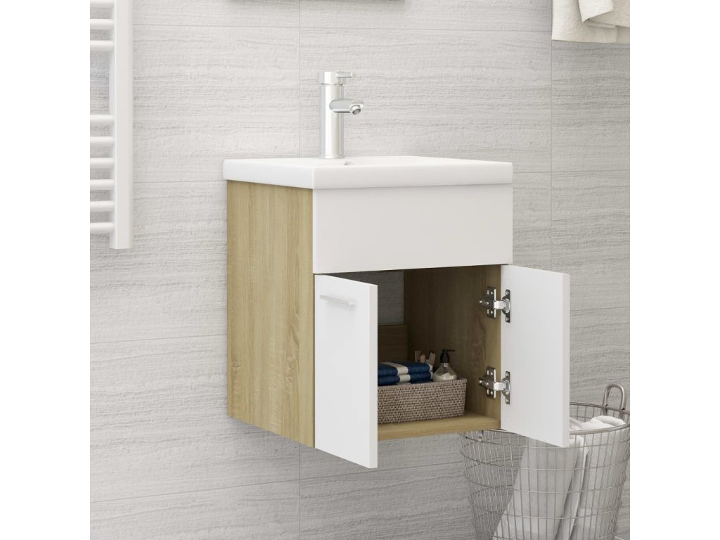 Táto skrinka je vyrobená z kompozitného dreva, vďaka čomu je robustná a stabilná. Úložná skrinka má 1 priečinok a 2 dvierka a ponúka dostatok úložného priestoru. Skvele sa hodí pod umývadlo a umožňuje pohodlné skladovanie vecí v kúpeľni. Umývadlo je vyrobené z keramiky a poslúži nielen ako praktický prostriedok na každodenné použitie, ale aj ako ozdoba vášho príbytku! Vďaka svojmu trendovému a modernému dizajnu sa toto umývadlo bude pekne hodiť do každého interiéru. Umývadlo je vybavené aj prepadom na odtok vody v prípade naplnenia. Jeho glazovaný povrch prináša moderný a zároveň elegantný dizajn. Skrinka aj umývadlo sa navyše dajú ľahko očistiť vlhkou handričkou.
