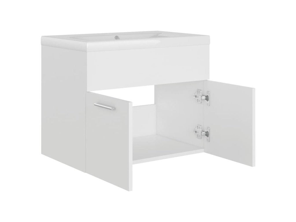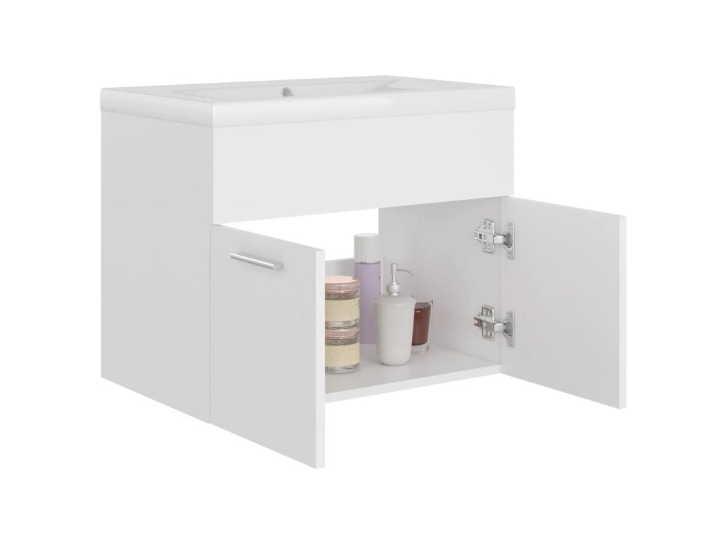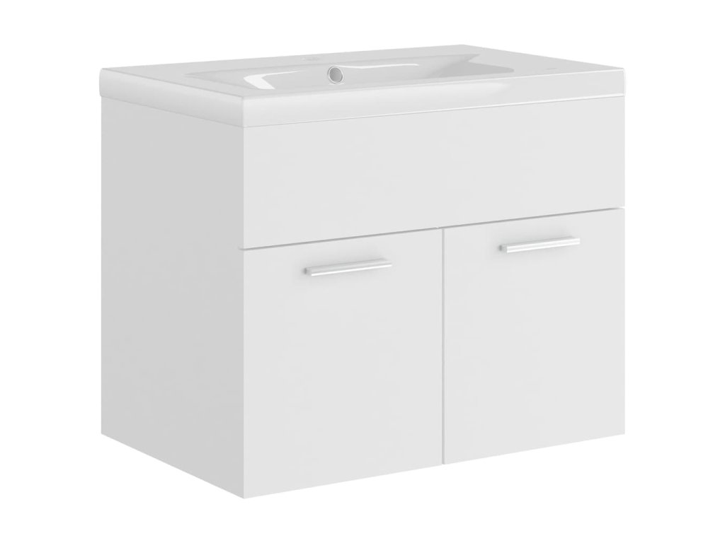 Skrinka je vyrobená z drevotriesky, vďaka čomu je pevná a stabilná. Úložná skrinka má 1 priehradku a 2 dvierka, takže poskytuje dostatok priestoru na uloženie vecí. Skvele sa hodí pod umývadlo a umožňuje pohodlné skladovanie vecí v kúpeľni. Umývadlo je vyrobené z keramiky a môže slúžiť nielen ako nádoba na každodenné použitie, ale aj ako ozdoba vo vašom obývacom priestore. Vďaka svojmu trendovému a súčasnému dizajnu sa toto umývadlo určite hodí k akémukoľvek interiéru. Je tiež vybavené prepadom na odtekanie vody, ak sa príliš naplní. Glazovaný povrch prináša moderný, ale elegantný dizajn. Skrinku a umývadlo navyše ľahko očistíte vlhkou handričkou.