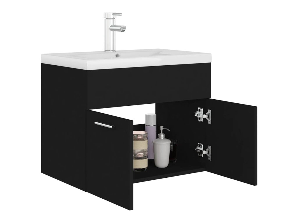 Skrinka je vyrobená z drevotriesky, vďaka čomu je pevná a stabilná. Úložná skrinka má 1 priehradku a 2 dvierka, takže poskytuje dostatok priestoru na uloženie vecí. Skvele sa hodí pod umývadlo a umožňuje pohodlné skladovanie vecí v kúpeľni. Umývadlo je vyrobené z keramiky a môže slúžiť nielen ako nádoba na každodenné použitie, ale aj ako ozdoba vo vašom obývacom priestore. Vďaka svojmu trendovému a súčasnému dizajnu sa toto umývadlo určite hodí k akémukoľvek interiéru. Je tiež vybavené prepadom na odtekanie vody, ak sa príliš naplní. Glazovaný povrch dodáva moderný, ale elegantný dizajn. Skrinku a umývadlo navyše ľahko očistíte vlhkou handričkou.