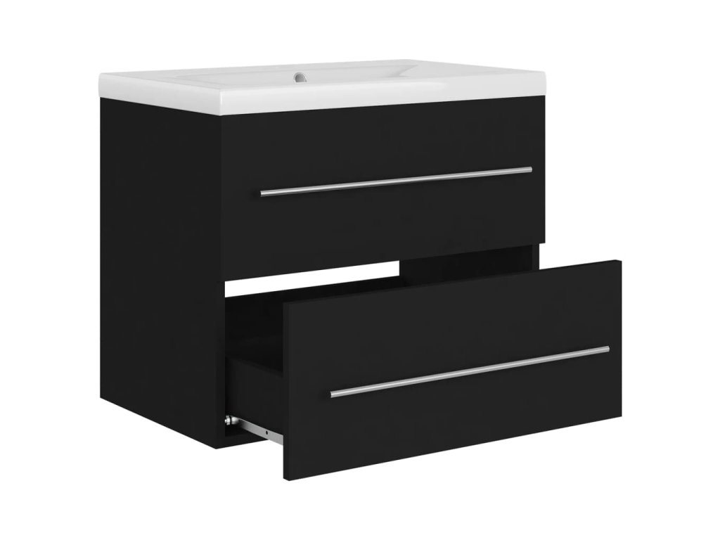Táto skrinka je vyrobená zo spracovaného dreva, vďaka čomu je pevná a odolná. Úložná skrinka má 1 zásuvku, ktorá ponúka dostatok priestoru na uloženie vecí. Skrinka sa bude dokonale hodiť pod vaše umývadlo a priehľadne uskladní všetky kúpeľňové doplnky. Umývadlo je vyrobené z keramiky a môže slúžiť nielen ako nádoba na každodenné použitie, ale aj ako ozdoba vášho obytného priestoru. Vďaka svojmu trendovému a modernému dizajnu sa hodí do každého interiéru. Má aj prepad na odtekanie vody, keď je umývadlo plné. Jeho glazovaný povrch prináša moderný a zároveň elegantný dizajn. Skrinka a umývadlo sa navyše ľahko čistia vlhkou handričkou.