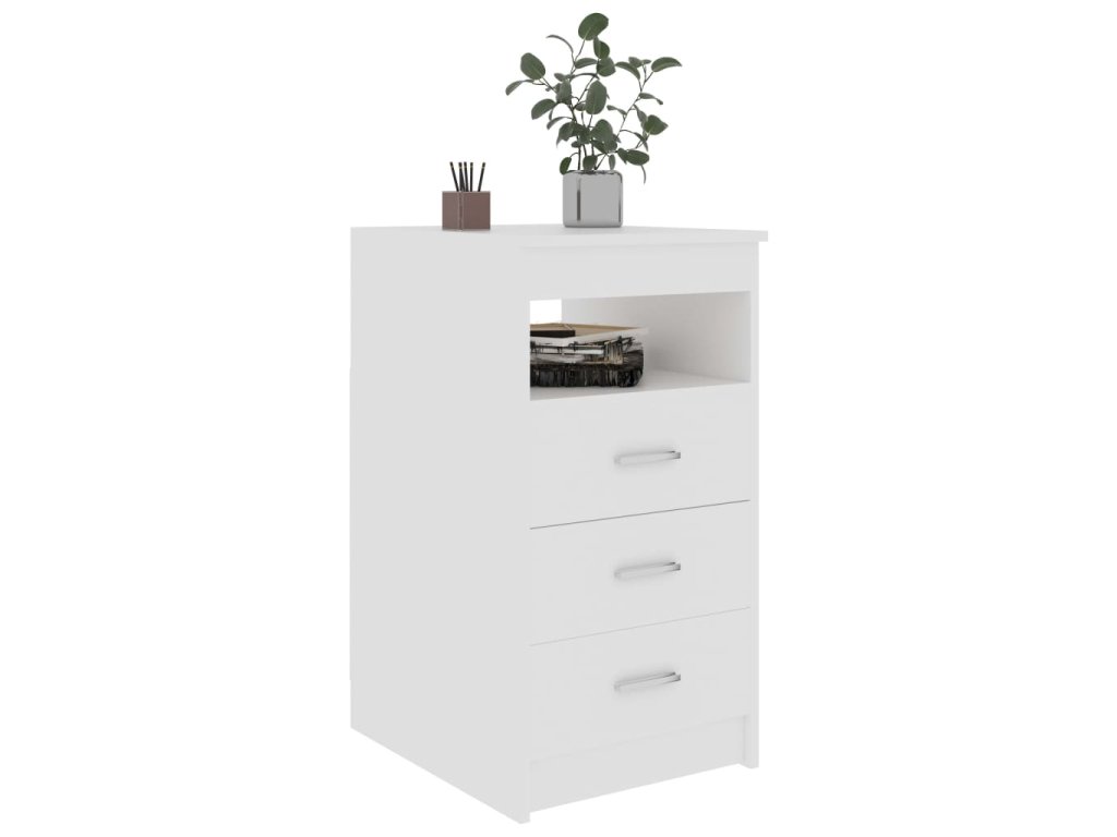 Skrinka je vyrobená z kvalitného kompozitného dreva, vďaka čomu je robustná a má dlhú životnosť. Má 3 zásuvky, do ktorých si môžete prehľadne odložiť rôzne dokumenty, šanóny a doklady. Na vrchnú dosku a do otvorenej poličky pod ňou si môžete vystaviť rámiky s fotkami, knihy či iné predmety. Skrinku môžete používať buď samostatne alebo si ju postaviť k písaciemu stolu, kde poslúži ako praktický úložný priestor.