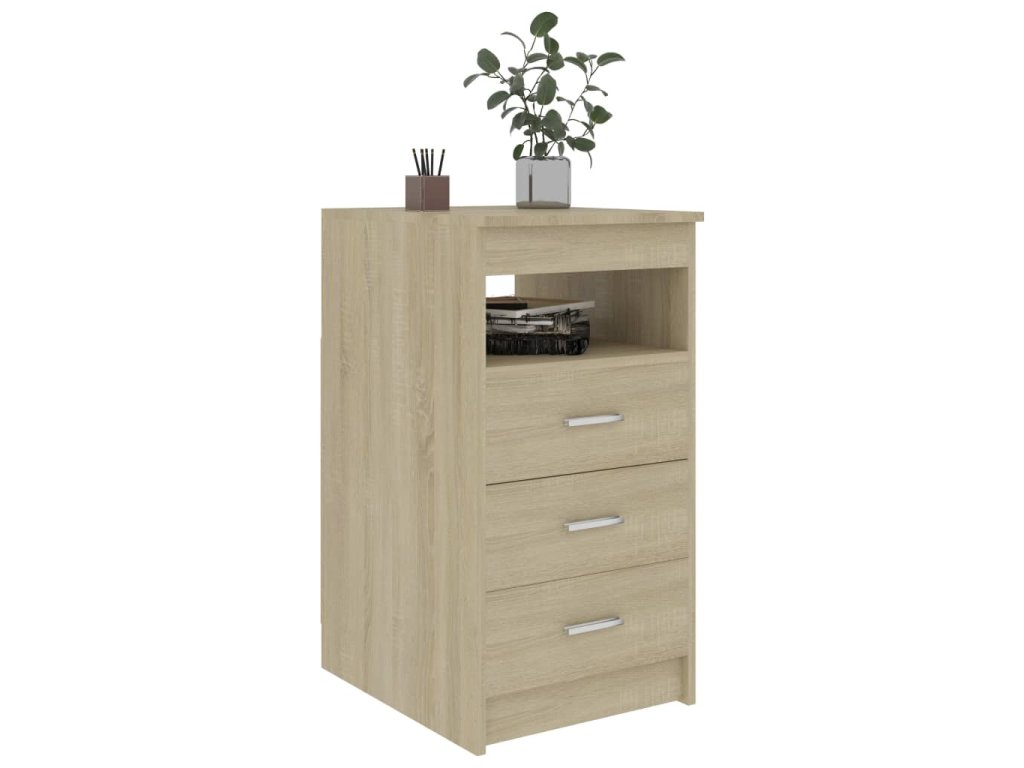 Skrinka je vyrobená z kvalitného kompozitného dreva, vďaka čomu je robustná a má dlhú životnosť. Má 3 zásuvky, do ktorých si môžete prehľadne odložiť rôzne dokumenty, šanóny a doklady. Na vrchnú dosku a do otvorenej poličky pod ňou si môžete vystaviť rámiky s fotkami, knihy či iné predmety. Skrinku môžete používať buď samostatne alebo si ju postaviť k písaciemu stolu, kde poslúži ako praktický úložný priestor.