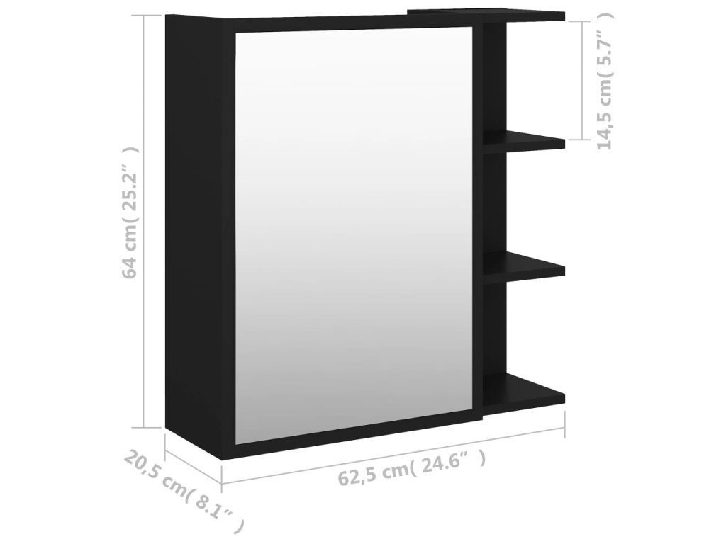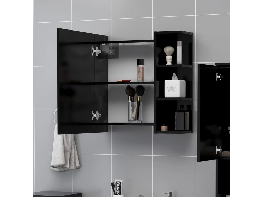Nástenná skrinka so zrkadlom je vyrobená z kompozitného dreva a akrylu, vďaka čomu je trvácna a stabilná. Skrinka má 1 dvierka a spolu 5 priečinkov. 3 vonkajšie priečinky poskytujú dostatok úložného priestoru a 2 vnútorné priečinky ponúkajú ďalší praktický priestor. Zmestia sa do nich vaše najdôležitejšie hygienické a kozmetické potreby, ako sú mydlá, šampóny, zubné pasty atď.