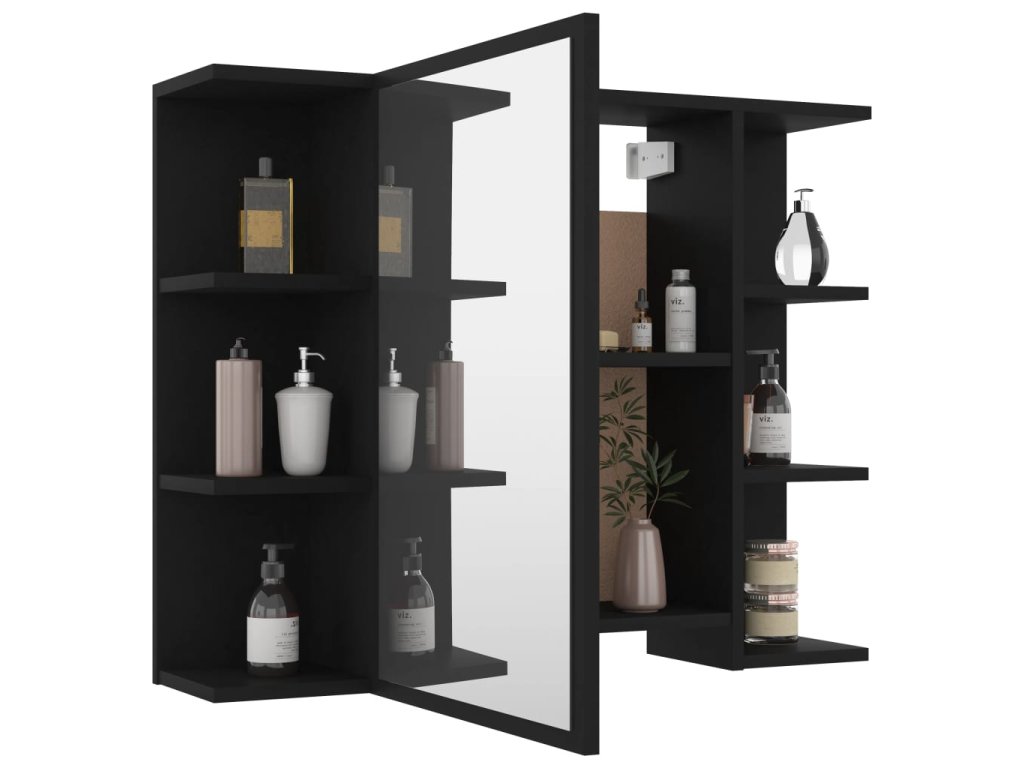 Nástenná skrinka so zrkadlom je vyrobená z spracovaného dreva a akrylu, vďaka čomu je trvácna a stabilná. Skrinka má 1 dvierka a spolu 8 priečinkov. 6 vonkajších priečinkov poskytuje dostatok úložného priestoru a 2 vnútorné priečinky ponúkajú ďalšie miesto na odkladanie rôznych predmetov. Zaručene sa do nich zmestia všetky toaletné a kozmetické potreby, ako napríklad mydlá, šampóny, zubné pasty a podobne.