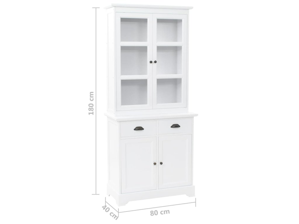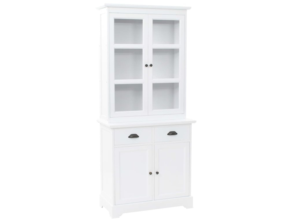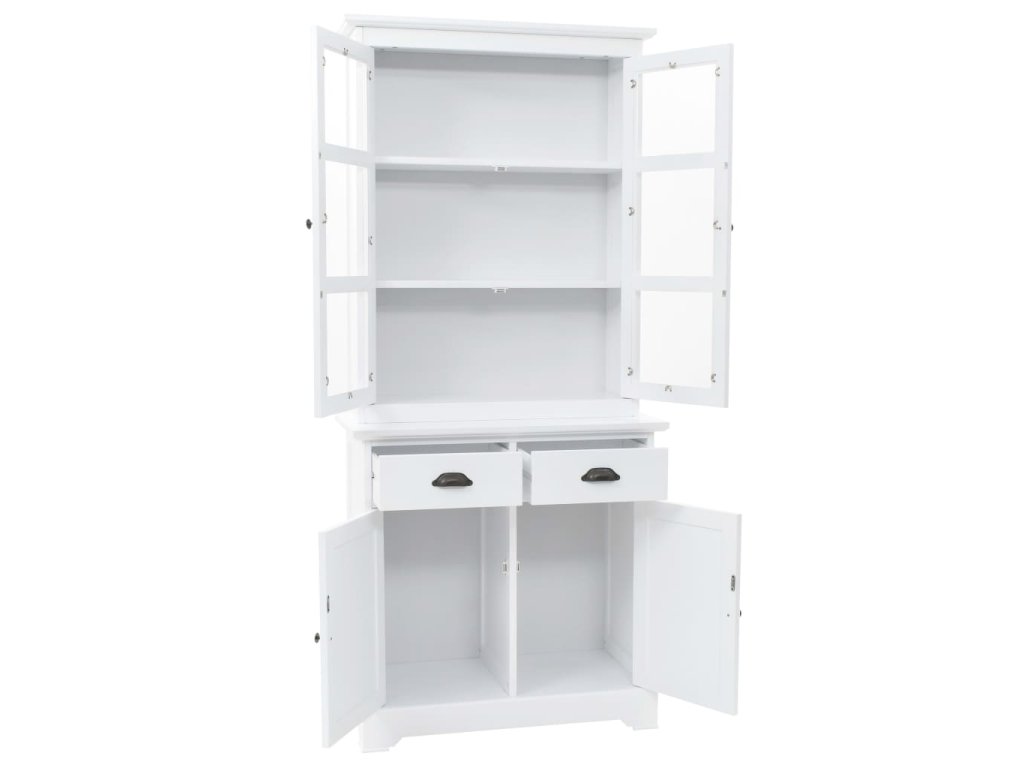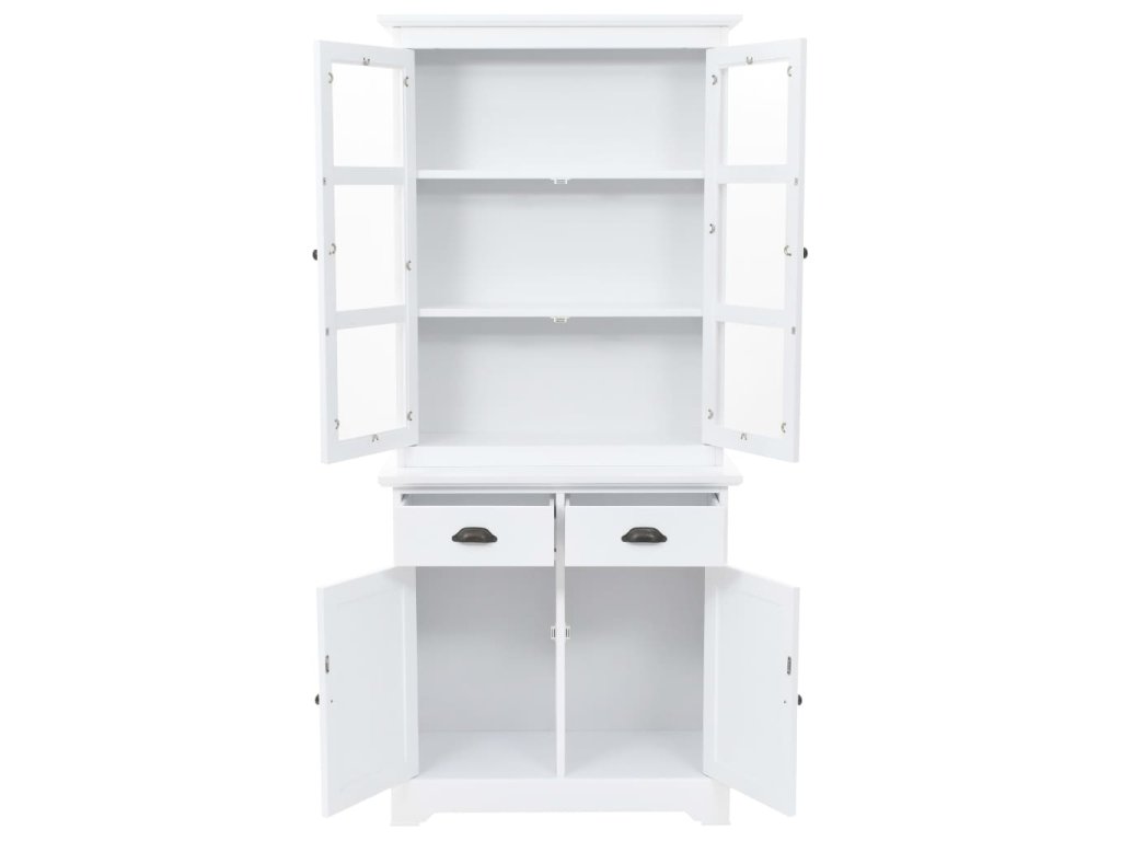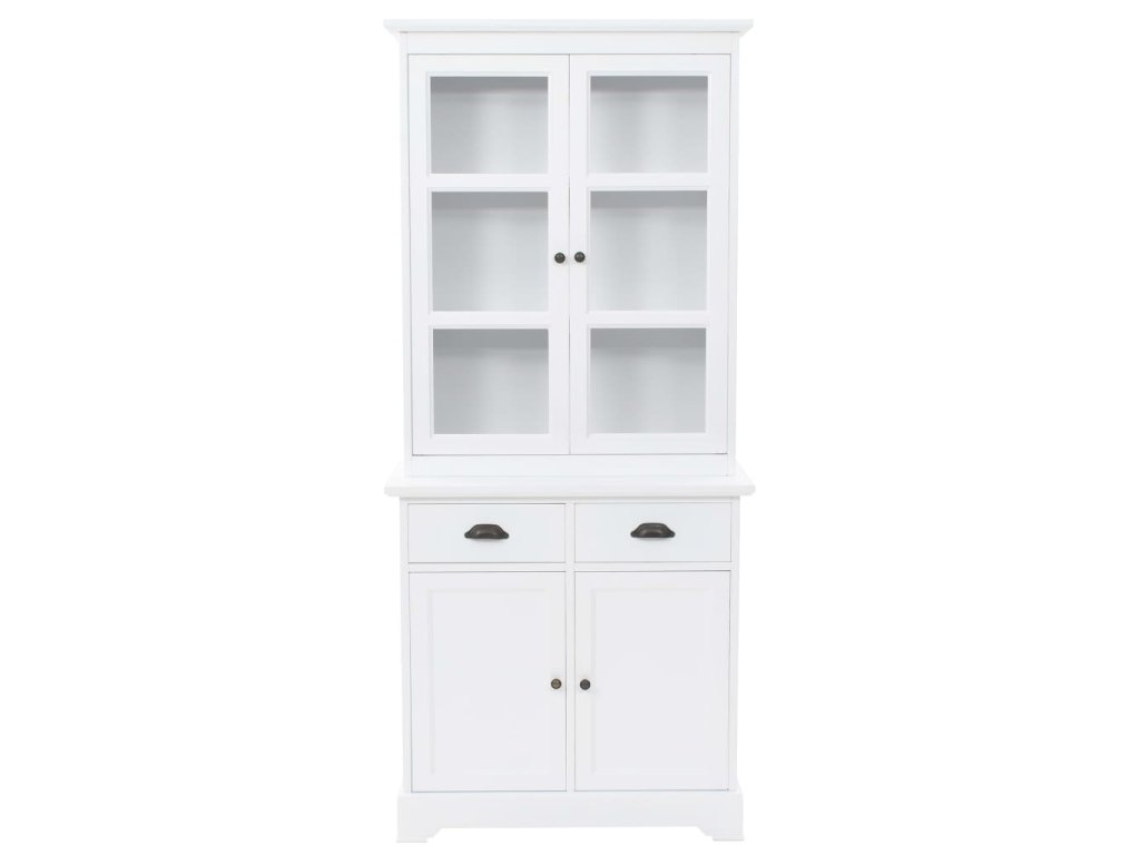 Skrinka na porcelán je vyrobená z MDF a na jej dvierkach a zásuvkách sa nachádzajú ozdobné kovové rúčky. 3 vrchné úložné priečinky sú ako stvorené na vystavenie pohárov alebo riadu, ale dajú sa používať aj na odkladanie veľkého množstva kníh, časopisov, CD, šanónov a podobne. Vďaka plastovým dvierkam budete mať vystavené predmety na očiach, no zároveň na ne nebude sadať prach. 2 zásuvky a 2 spodné skrinky poskytujú dostatok priestoru na vaše osobné veci.