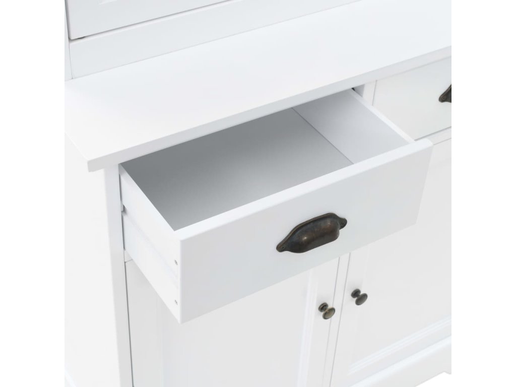 Skrinka vo waleskom štýle s vkusným dizajnom a čistým bielym povrchom bude ideálnym doplnkom vo vašej obývačke alebo inej miestnosti v dome. Môže byť použitá aj ako príborník alebo skrinka na porcelán.