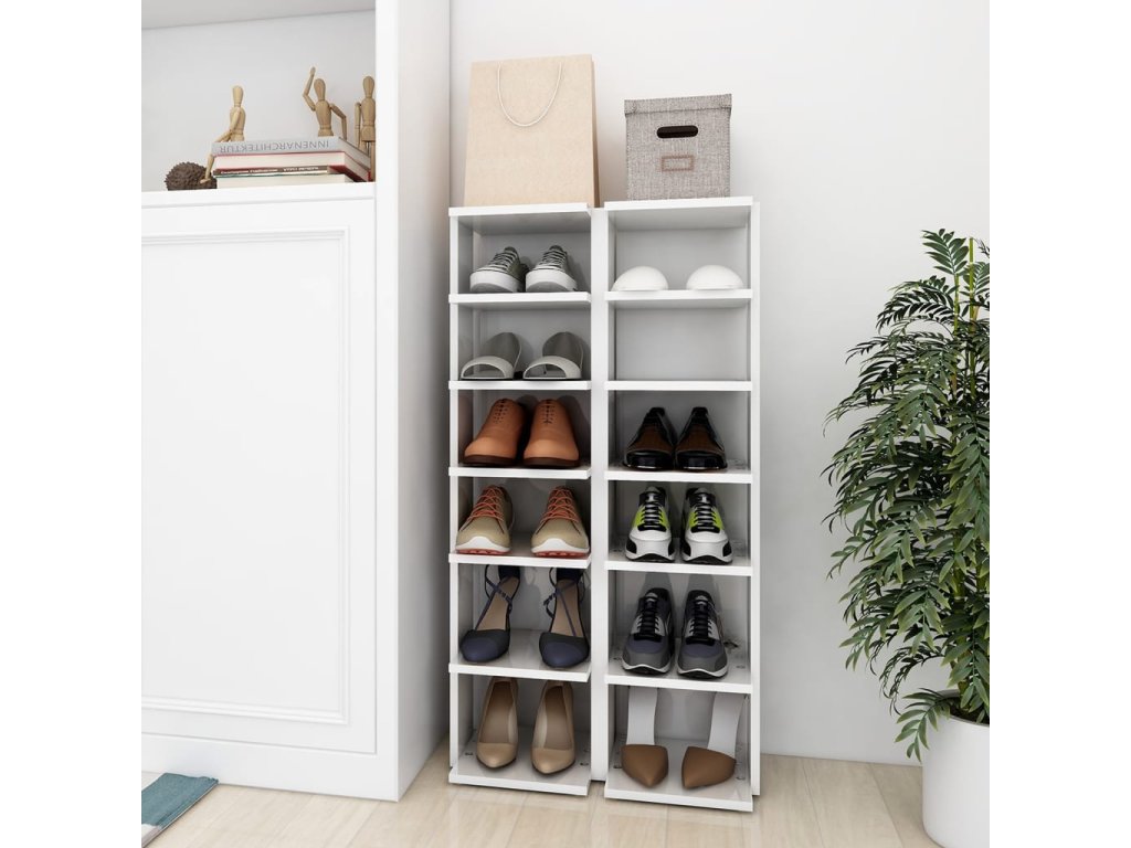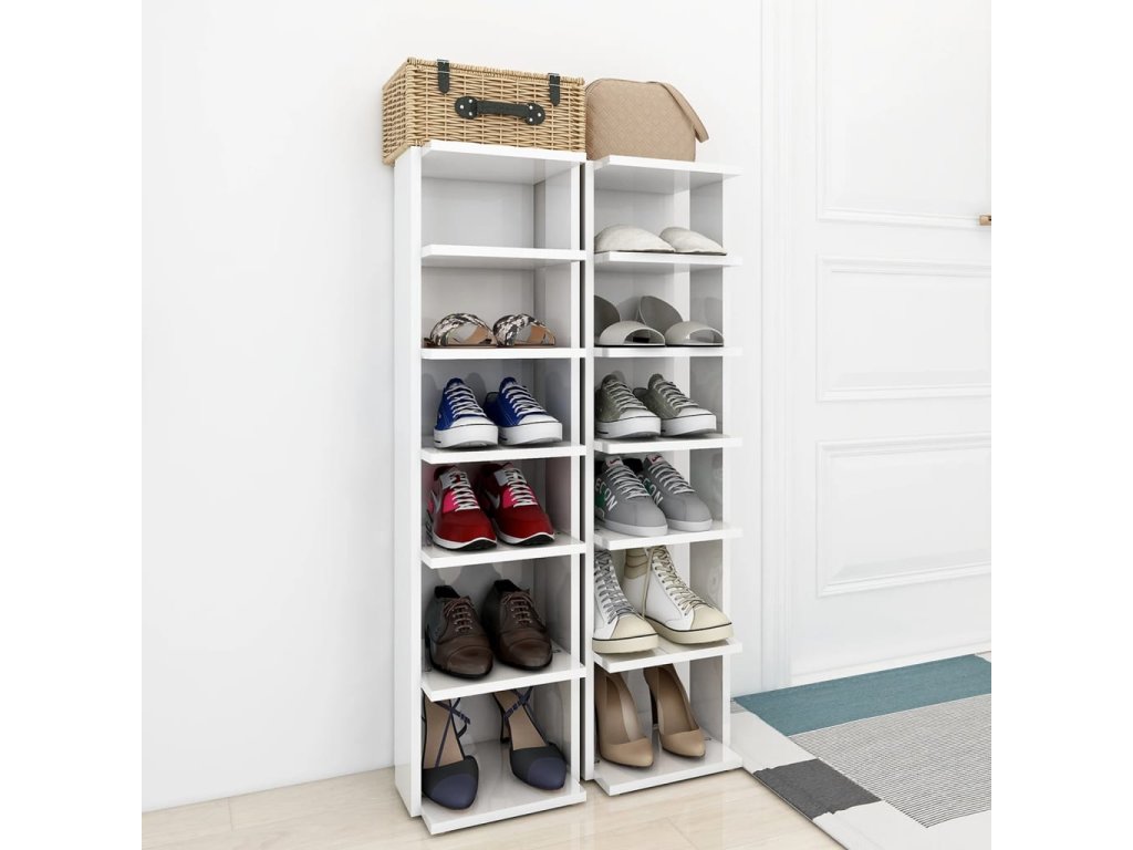 Je vyrobená z kvalitného kompozitného dreva, ktorá jej dodáva rafinovaný vzhľad a zabezpečuje jej stabilitu a odolnosť. Táto skrinka na topánky zaberá len málo miesta a je ideálna do úzkych kútov, napríklad do priestoru pod schodmi. Každá skrinka má 6 políc a zmestí sa do nej veľa topánok.