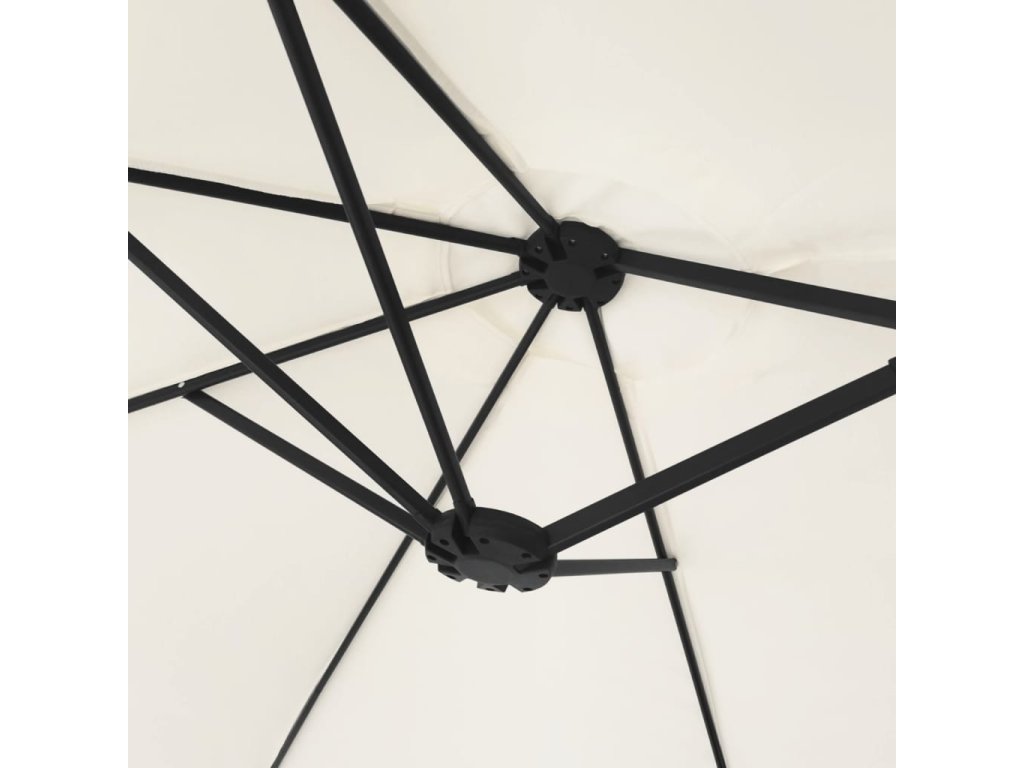 - Trvácny materiál: Slnečník je vyrobený z polyesteru, ktorý nevybledne a je odolný voči UV žiareniu, vďaka čomu vám poskytne optimálnu ochranu pred slnkom a ľahko sa čistí.