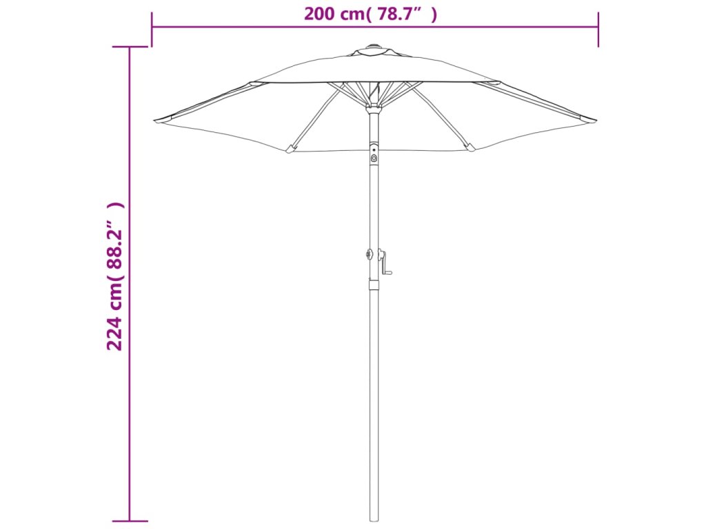 Skladací a prenosný slnečník je vybavený kľukou a sklopným dizajnom. Strecha slnečníka je vyrobená z polyesteru, ktorý je odolný voči UV žiareniu, nebledne a poskytne vám optimálnu ochranu pred slnkom. Pevná hliníková tyč s práškovou povrchovou úpravou spolu so 6 pevnými kovovými rebrami zabezpečí stabilitu a zvýšenú trvácnosť slnečníka, aby ste ho mohli využívať celé roky.