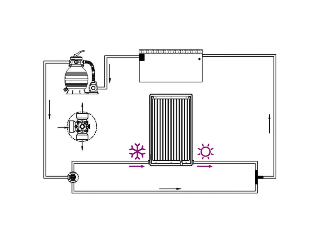Tento solárny ohrev bazéna predstavuje ideálny doplnok do nadzemných bazénov. Vodu v bazéne ohrieva pomocou solárnej energie.