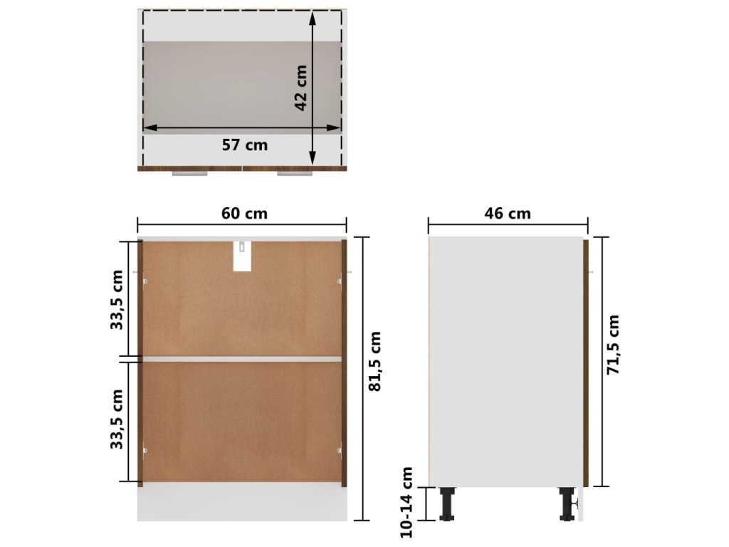 - Dodatočný úložný priestor: Kuchynská skrinka má dve priehradky, ktoré ponúkajú dostatok priestoru na uloženie misiek, tanierov, hrncov a iných kuchynských spotrebičov.