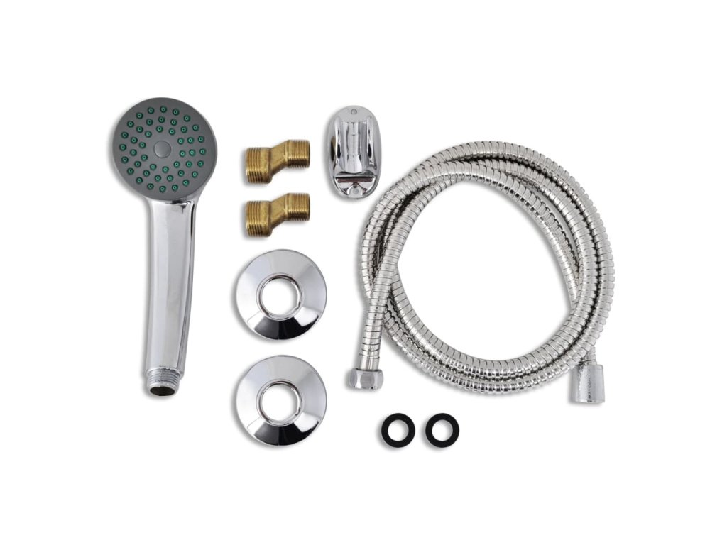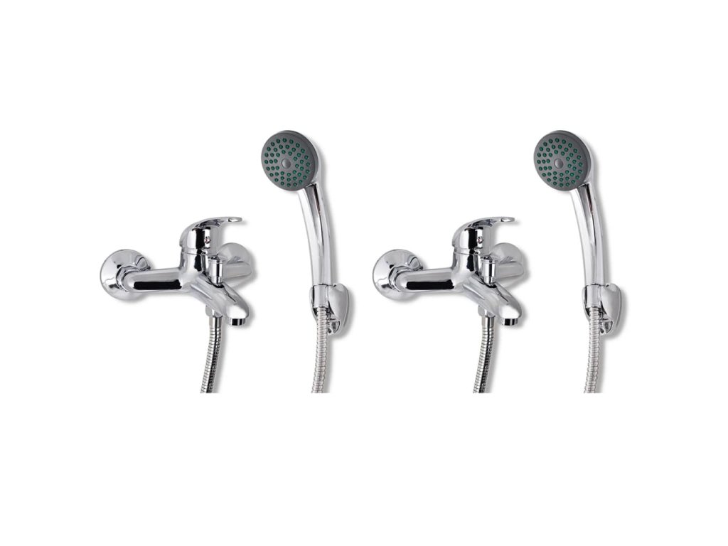 Balenie obsahuje 2 vodovodné batérie, 2 sprchové hlavice s háčikmi, 2 nerezové hadice a inštalačné príslušenstvo.
