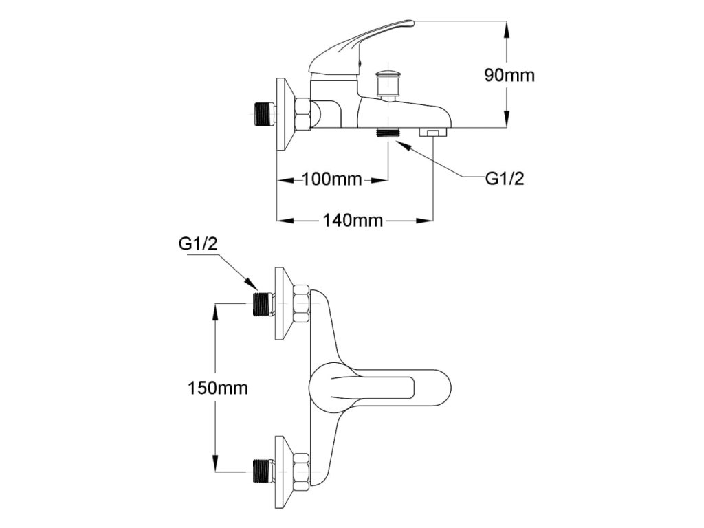 - Telo a páka zo zliatiny zinku, pochrómovaný povrch