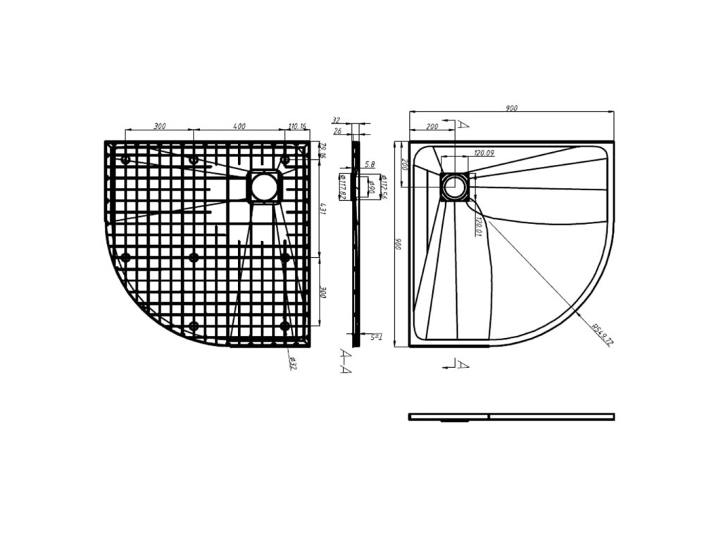 Základňa kúpeľne má nízky prah pre ľahký vstup a výstup. Odolná sprchová vanička SMC je kvôli odolnosti spevnená. Obsahuje aj nerezový kryt na odtok. Odtokový otvor má priemer 90 mm.