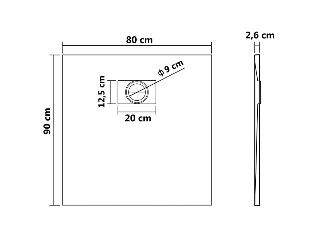 - Štandardný otvor na odtok s priemerom 9 cm (odtokový žľab nie je súčasťou balenia)