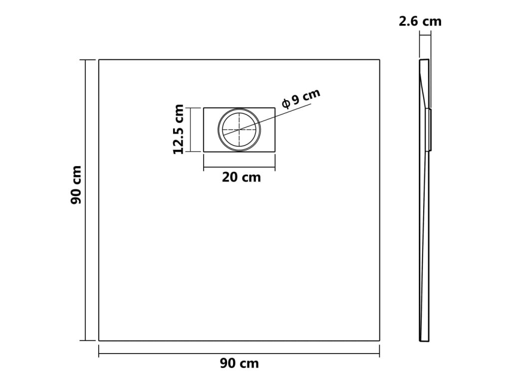 - Štandardný otvor na odtok s priemerom 9 cm (odtokový žľab nie je súčasťou balenia)