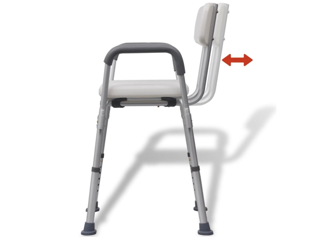 Trvácna stolička do sprchy unesie až 100 kg a znesie aj opakované používanie pri sprchovaní. Na plastovom sedadle sa nachádzajú odtokové otvory, vďaka ktorým sa na stoličke nenahromadí voda, a tak sa zníži riziko poškmyknutia. Stolička je vyrobená z pevného hliníka, takže je ľahká a zároveň dostatočne stabilná. Výška stoličky do vane sa dá nastaviť a operadlo môžete podľa potreby sklopiť dozadu alebo dopredu.