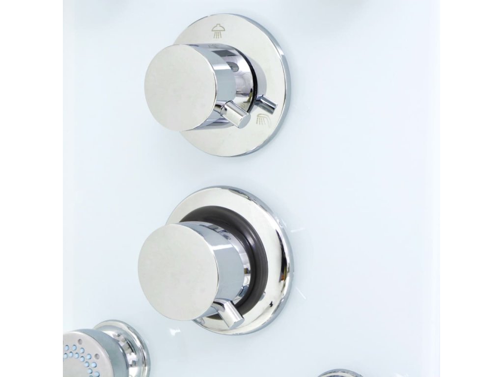 - Pochrómovaná dažďová sprchová hlavica, masážne trysky, ručná sprchová hlavica a kohútiky