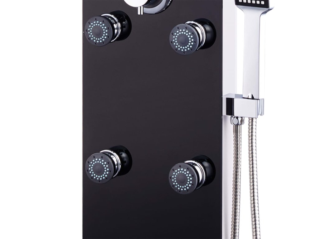 Sprchový panel je vyhotovený z nehrdzavejúcej ocele a tvrdeného skla. Tvrdené sklo sa vyrába pomocou kontrolovaného tepelného alebo chemického ošetrovania, čo zvyšuje jeho trvácnosť a bezpečnosť v porovnaní s bežným sklom. Ponúka tri režimy sprchovania, ktoré sa dajú jednoducho meniť: dážď, masážna sprcha a ručná sprcha. Silikónové trysky sú odolné voči usadzovaniu vodného kameňa. Doprajte si ozajstný relax a vychutnajte si moderný štýl a krásny dizajn tohto sprchového panelu! Montáž je jednoduchá.