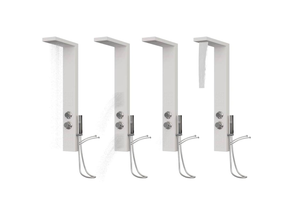 Sprchový panel je vyrobený z odolného hliníka a má krásny štvorcový dizajn. Má štyri rôzne režimy: dážď, vodopád, masážne trysky a ručnú sprchovú hlavicu. Režimy sa dajú ľahko meniť pomocou kohútikov.