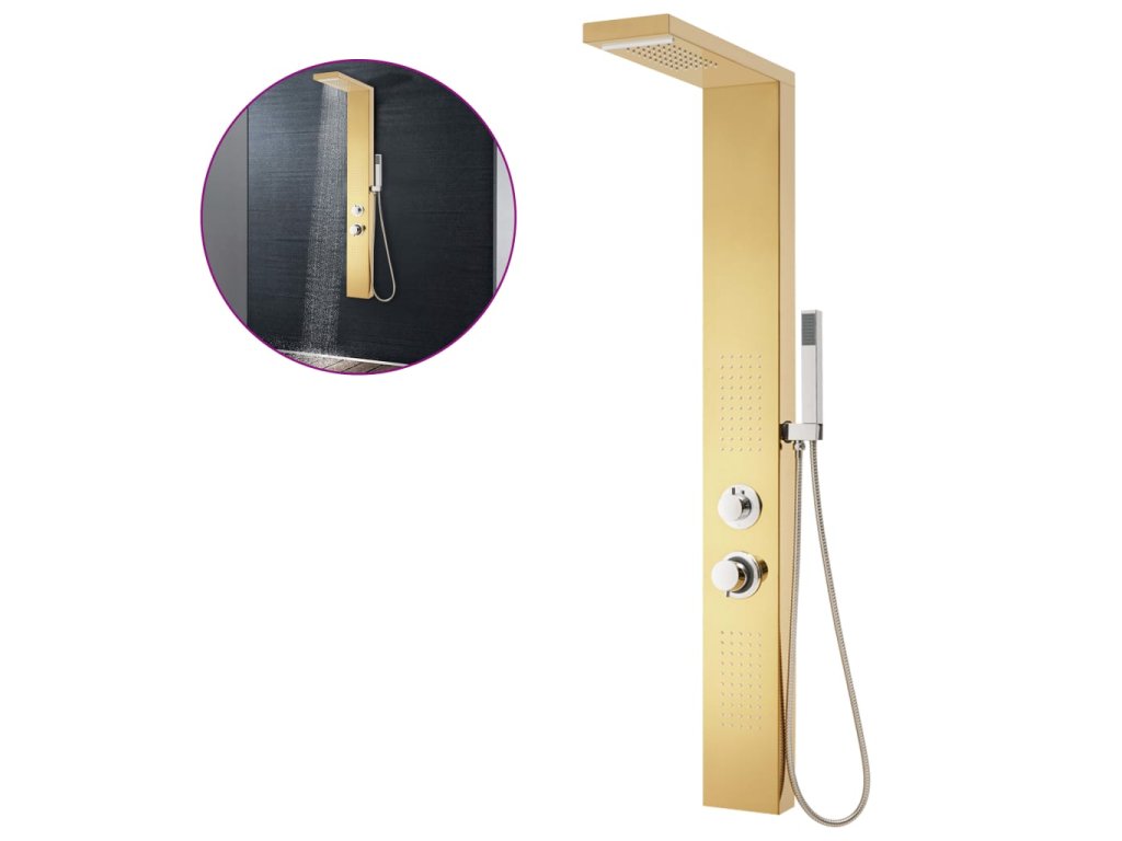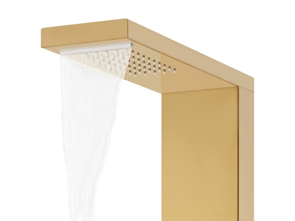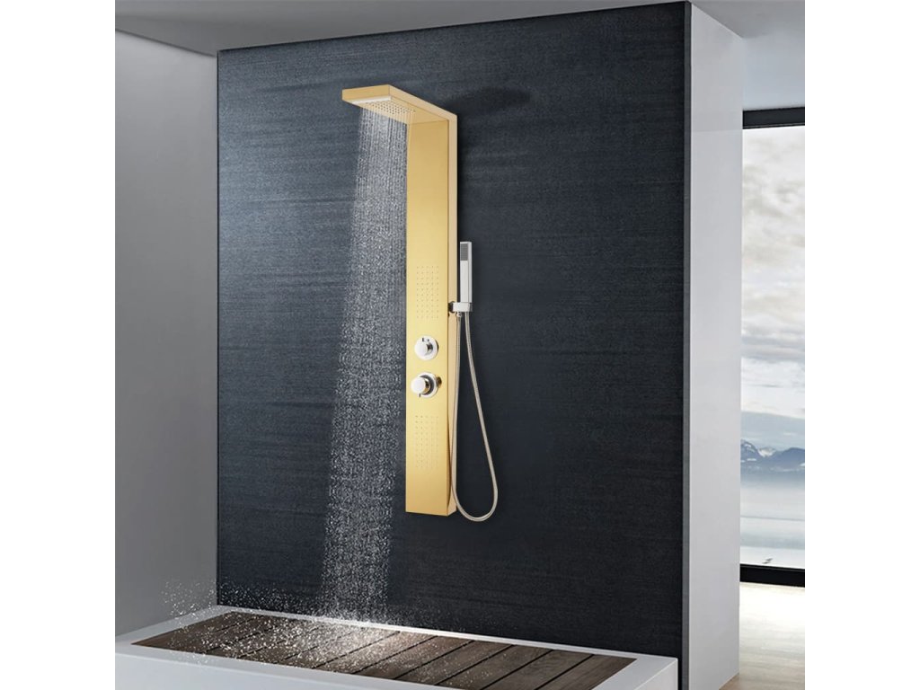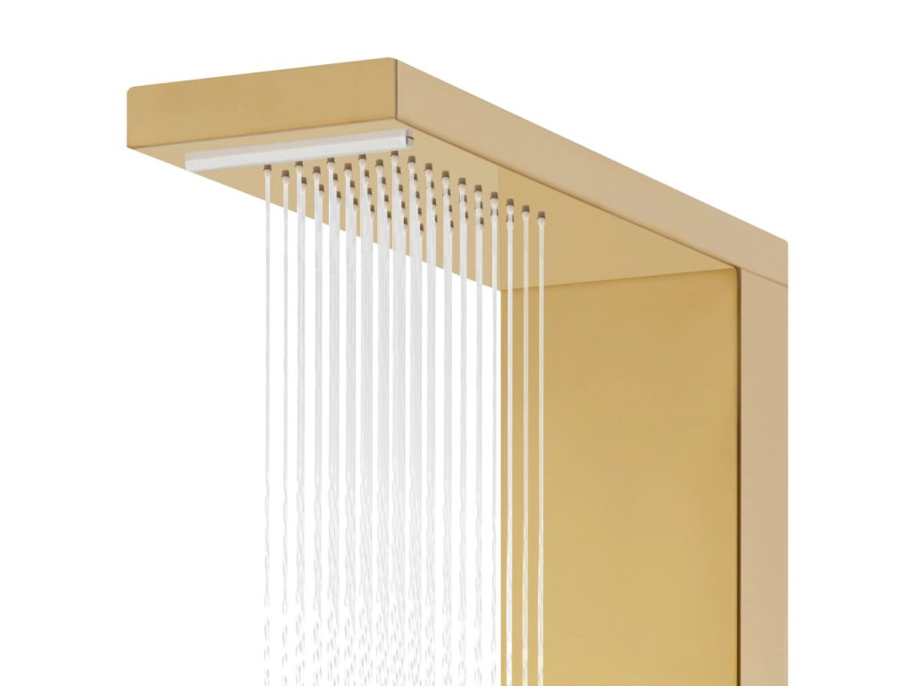 Tento multifunkčný zlatý sprchový panel má štýlový dizajn a predstavuje skvelý doplnok do kúpeľne.