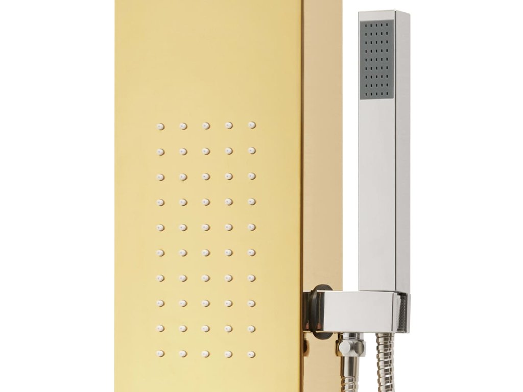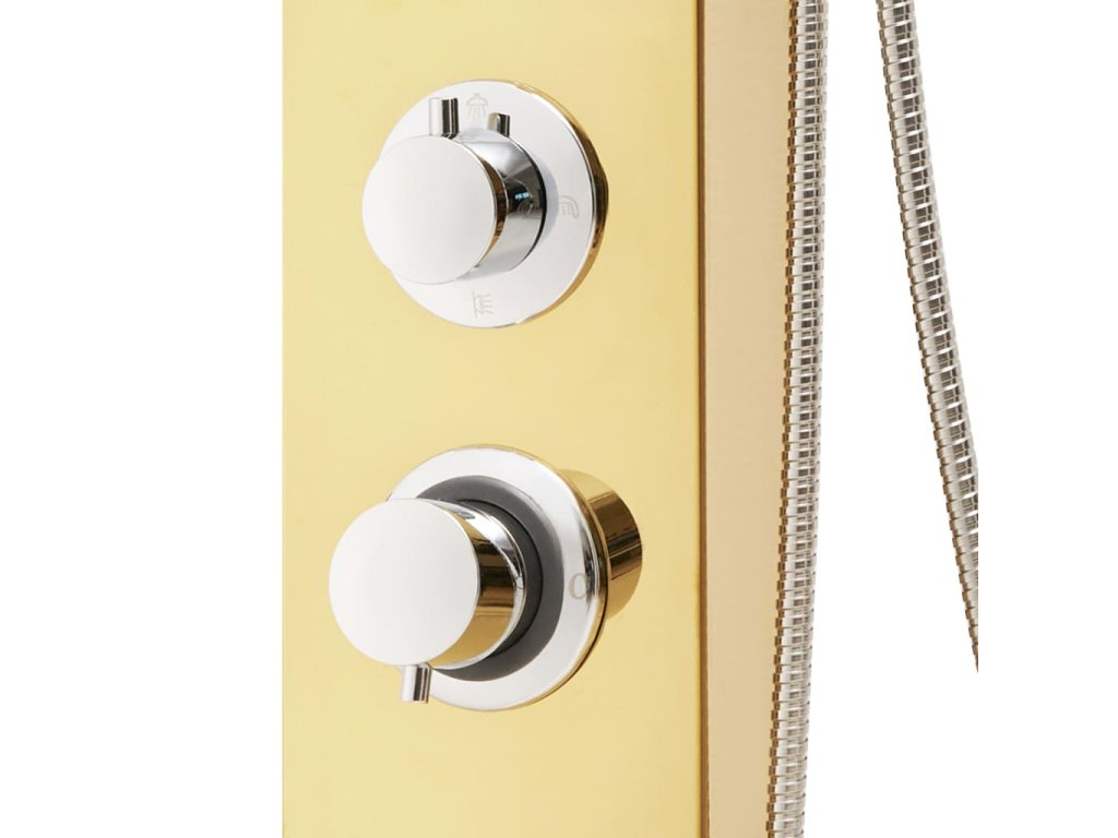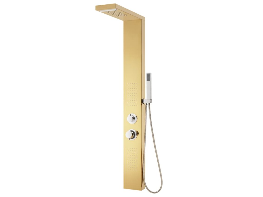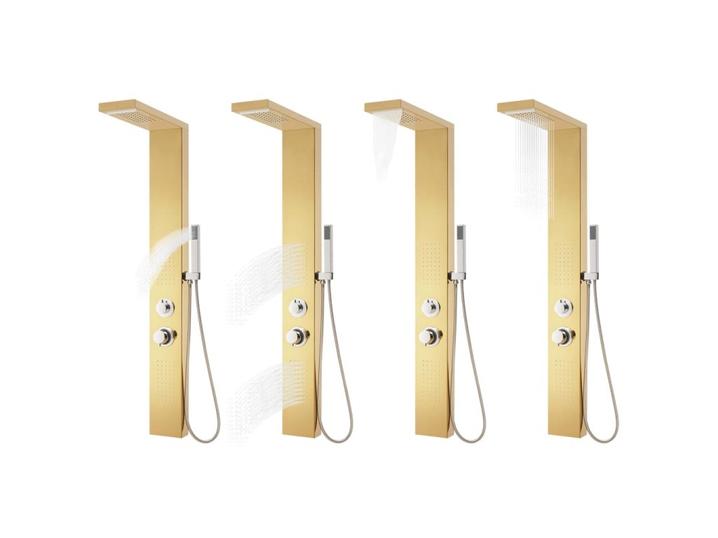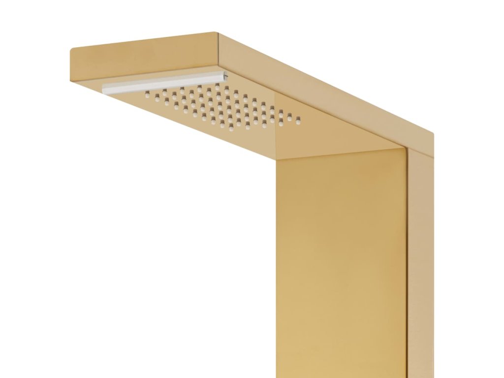 Tento multifunkčný zlatý sprchový panel má štýlový dizajn a predstavuje skvelý doplnok do kúpeľne.