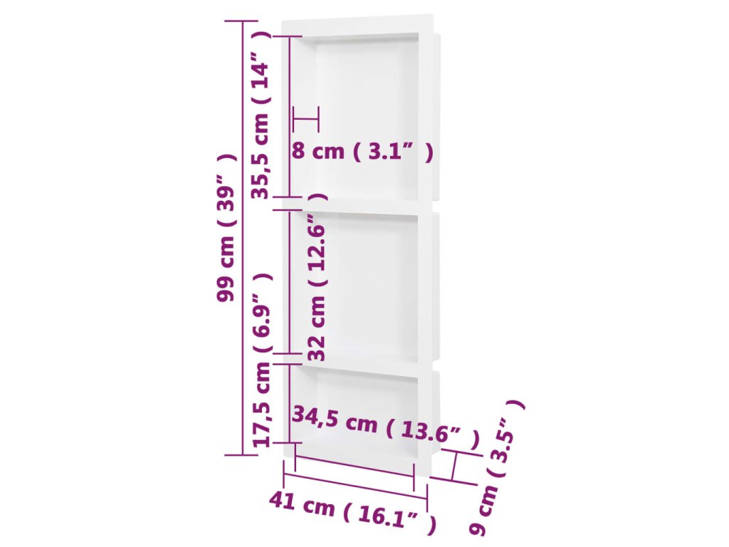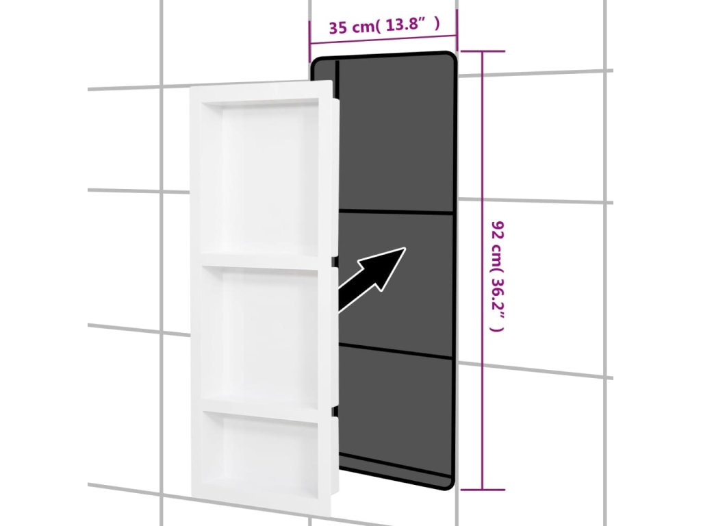 Táto kúpeľňová polica je vyrobená z SMC, vďaka čomu je odolná, trvácna a ľahko sa čistí vlhkou handričkou. Nielenže si v nej môžete ponechať základné veci do sprchy, ale môžete tam uložiť aj dekoratívne predmety do domácnosti, ako sú kvety, rastliny, výstavné predmety atď., aby vaša kúpeľňa získala exotický vzhľad. Výklenok poskytuje dostatok úložného priestoru na odloženie základných vecí v kúpeľni, ako je mydlo, šampón a kondicionér.