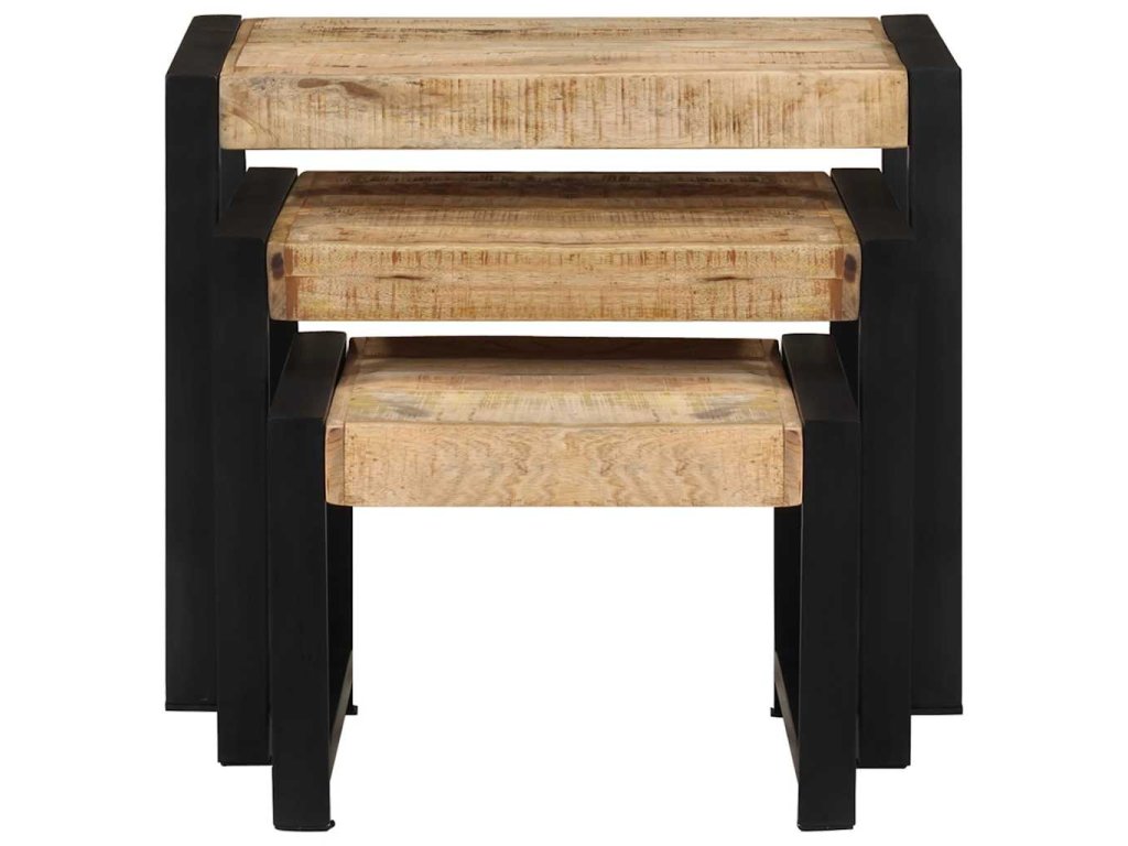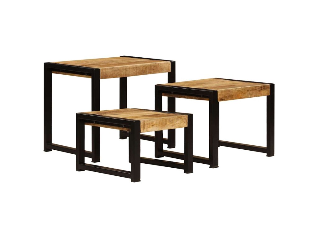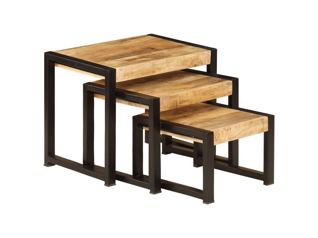 Táto sada 3 stohovateľných stolíkov vo vintage štýle je vyrobená z mangového masívu, vďaka čomu je veľmi stabilná a trvácna. Mangové drevo je husté a robustné tvrdé drevo, ktoré má na svojom porvchu krásne hnedé alebo zlatisté prúžky a kresby. Vďaka spevnenému oceľovému rámu sú stolíky naozaj stabilné a trvácne. Keďže sa dajú poukladať na seba, nebudú zaberať veľa miesta, keď sa nepoužívajú. Pôsobivý retro štýl stolíkov umocňuje aj ich remeselné opracovanie. Každý krok výrobného procesu sa vykonáva s najväčšou starostlivosťou, či už je to leštenie, natieranie alebo lakovanie.