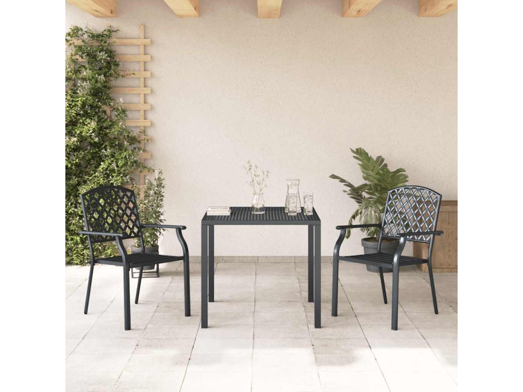 Tieto stohovateľné jedálenské stoličky majú sieťovinový dizajn a vašej terase, záhrade alebo jedálenskej miestnosti dodajú nádych priemyselného štýlu.
