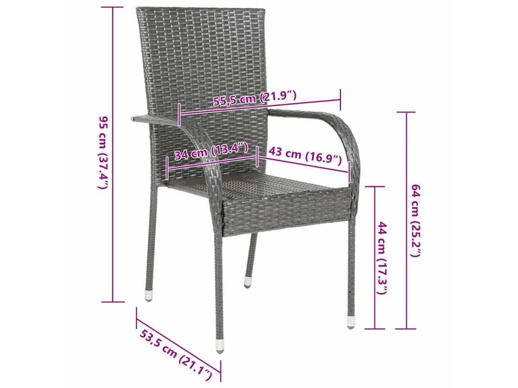 Tieto stohovateľné záhradné stoličky sú vyrobené z vodovzdorného PE ratanu, takže sú odolné, ľahko čistia a sú vhodné na každodenné používanie v exteriéri. Vonkajšie stoličky majú oceľový rám s práškovou povrchovou úpravou, ktorý im dodáva potrebnú pevnosť a stabilitu. Vonkajšie stoličky sú ľahké a dajú sa poukladať na seba, aby nezaberali veľa miesta, keď sa nepoužívajú.